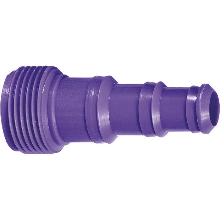 Пластмассовый адаптер Palisad 66180 с внешней резьбой 3/4 дюйма и переходным соединением интегрируется в поливочную линию для подключения к соединителю или разветвителю шланга диаметром 1/2 или 3/4 дюйма. Используется в ходе монтажа системы полива на дачном участке.