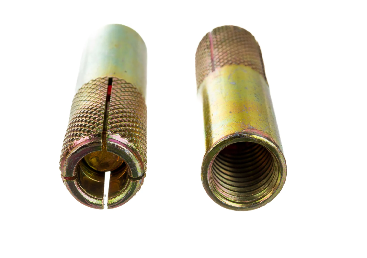• Состоит из трёх основных компонентов: металлической втулки с прорезями на боковых поверхностях, другой втулки, установленной на распорный элемент, и самого распорного элемента с резьбой.