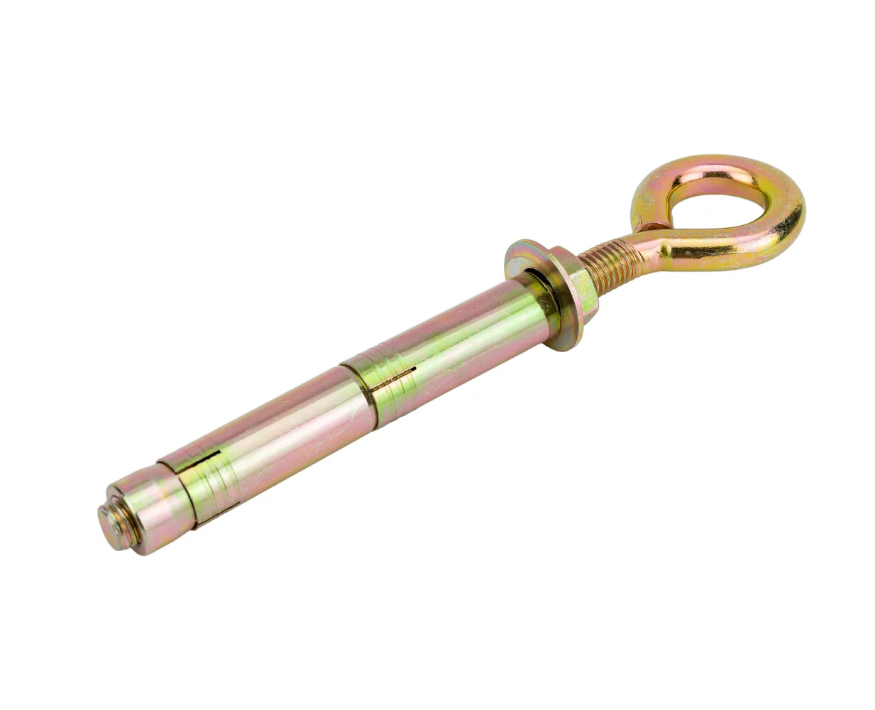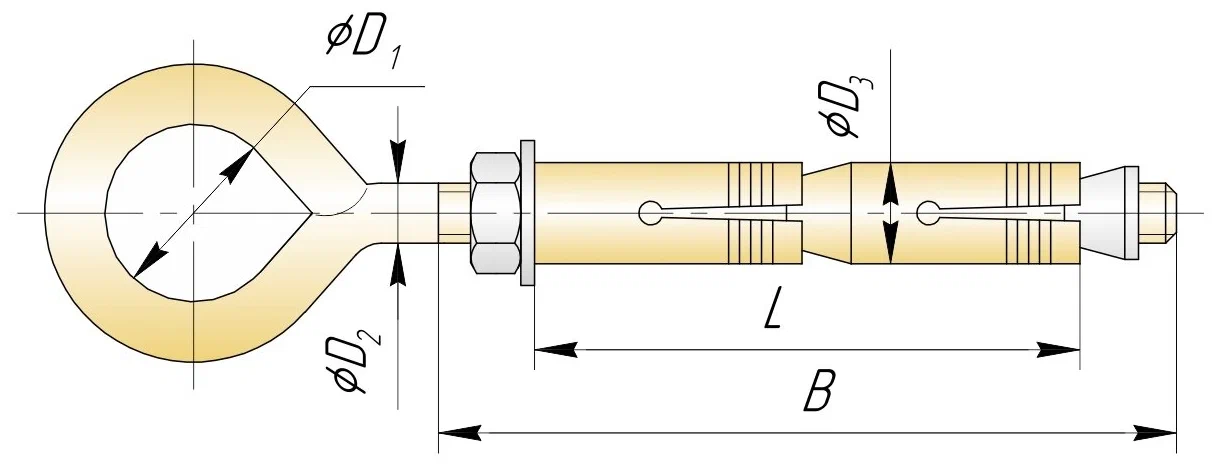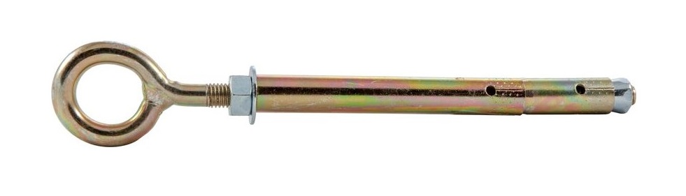 • Болт на одном конце имеет головку-кольцо, а распорный механизм гарантирует надёжную фиксацию в материале основы.