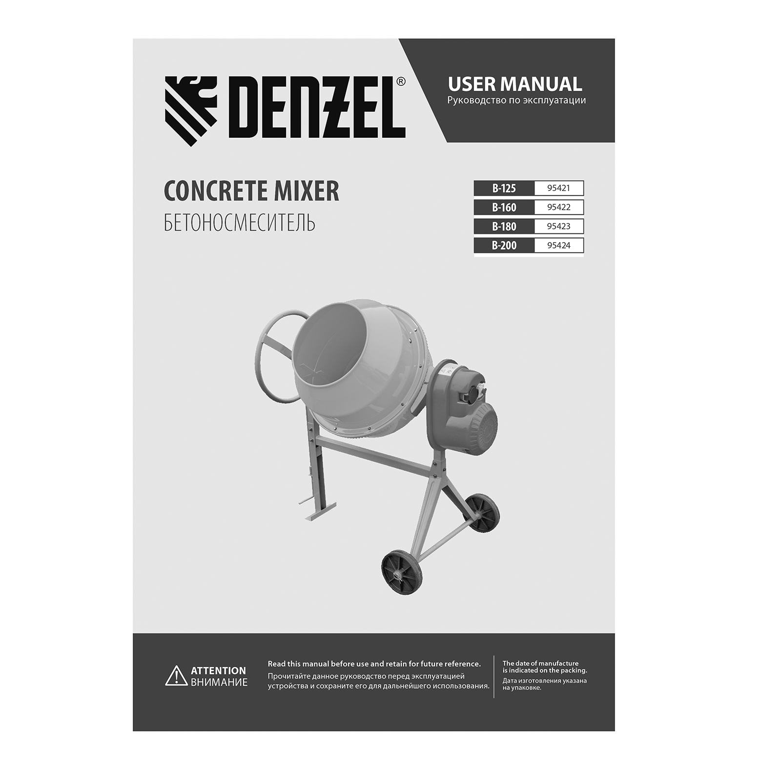 Бетоносмеситель в разборе - 1 шт, Комплект крепежа - 1 шт, Герметик - 1 шт, Привод - 1 шт, Руководство по эксплуатации - 1 шт |