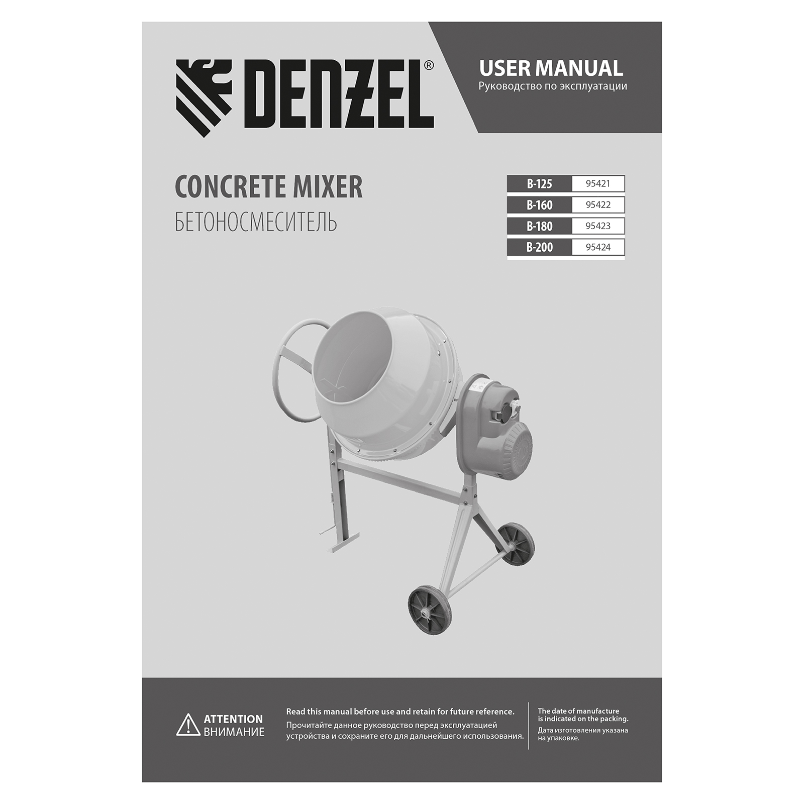 Бетоносмеситель в разборе - 1 шт, Комплект крепежа - 1 шт, Герметик - 1 шт, Привод - 1 шт, Руководство по эксплуатации - 1 шт |