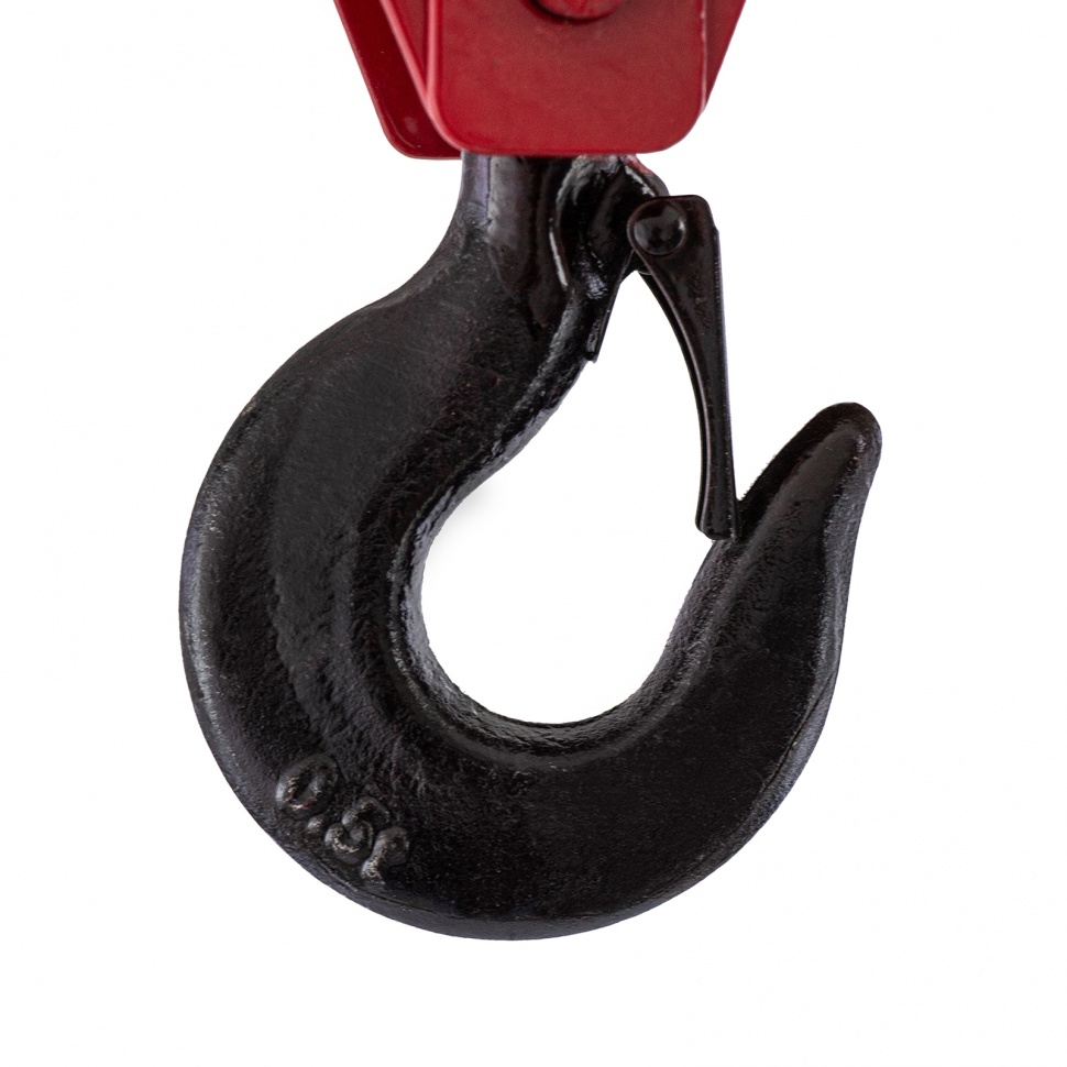 - Безопасная работа — кованая предохранительная защелка на крюке обеспечивает надежную фиксацию груза.