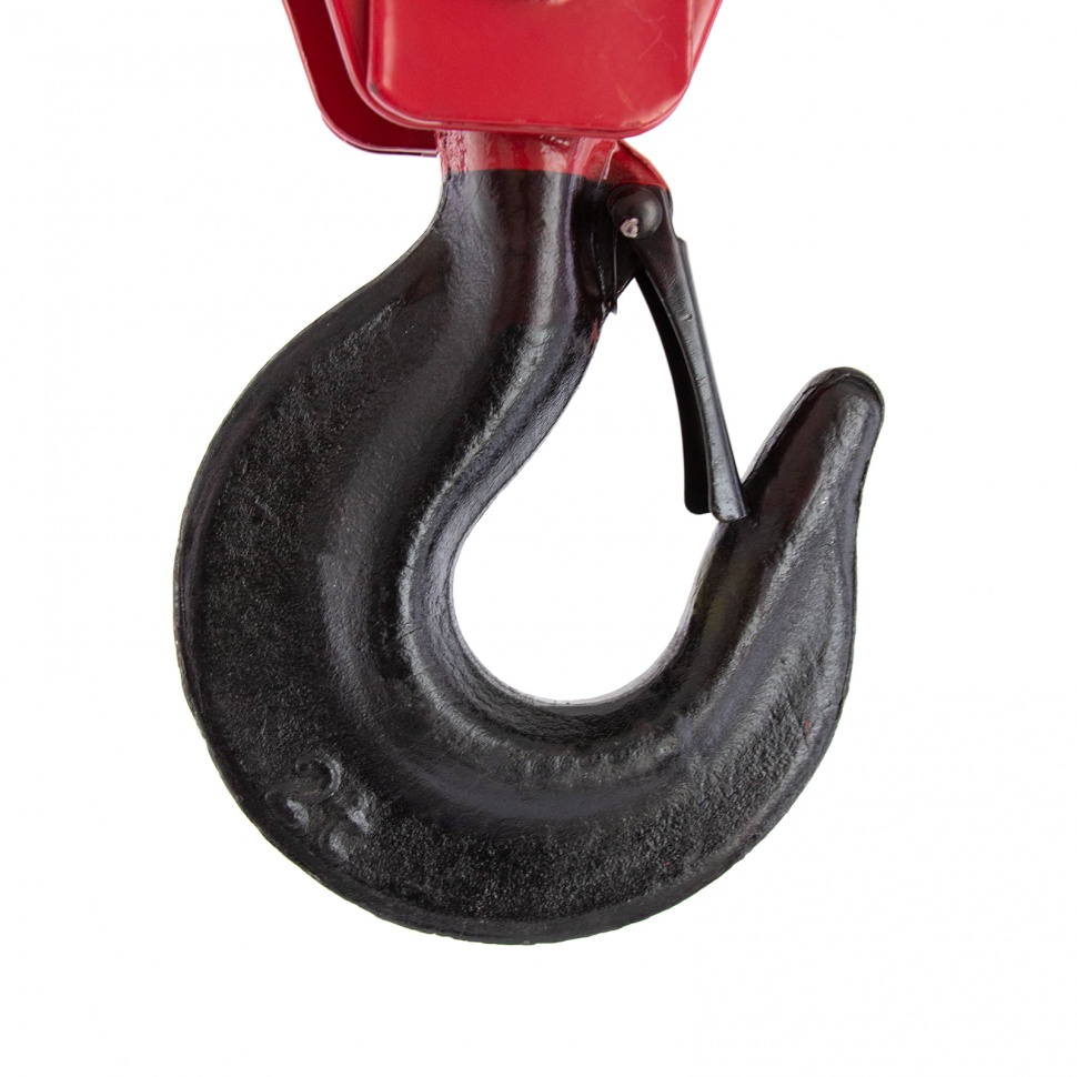 - Безопасная работа — кованая предохранительная защелка на крюке обеспечивает надежную фиксацию груза.