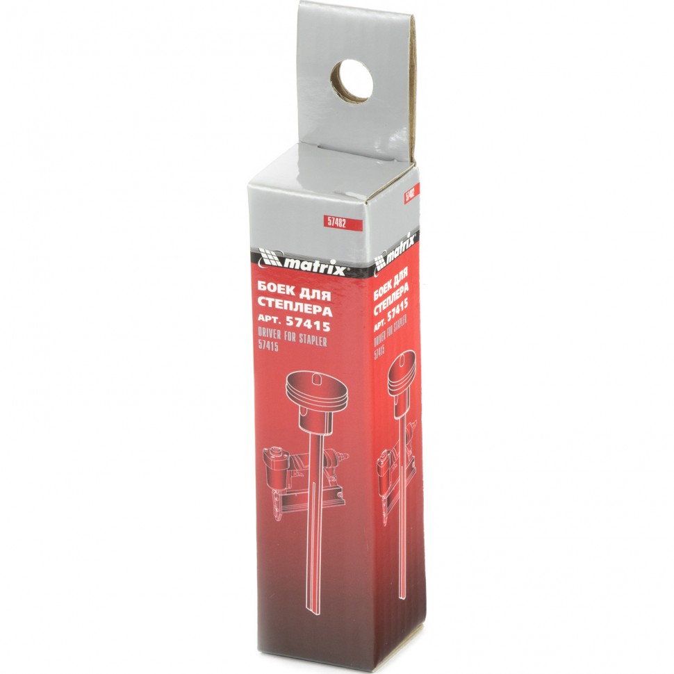 Боек Matrix 57482 предназначен для установки на пневматический степлер 57415. Снабжен уплотнительным кольцом, обеспечивающим стабильную работу инструмента при давлении до 10 МПа и температуре воздуха до -20 градусов C.