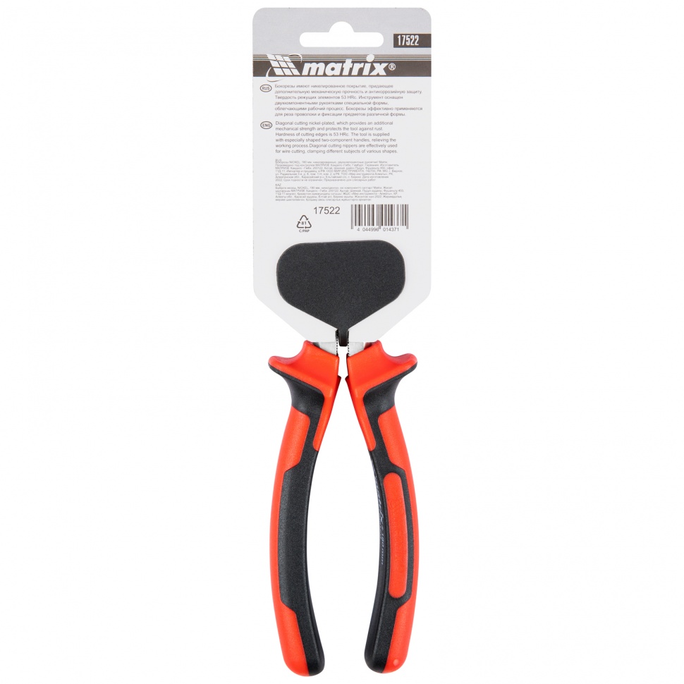 Никелированные бокорезы Matrix NICKEL 17522 длиной 180 мм, с двухкомпонентными рукоятками, используются для перекусывания проводов и проволоки. Пригодятся частным мастерам и профессионалам для проведения монтажных, строительных и слесарных работ.