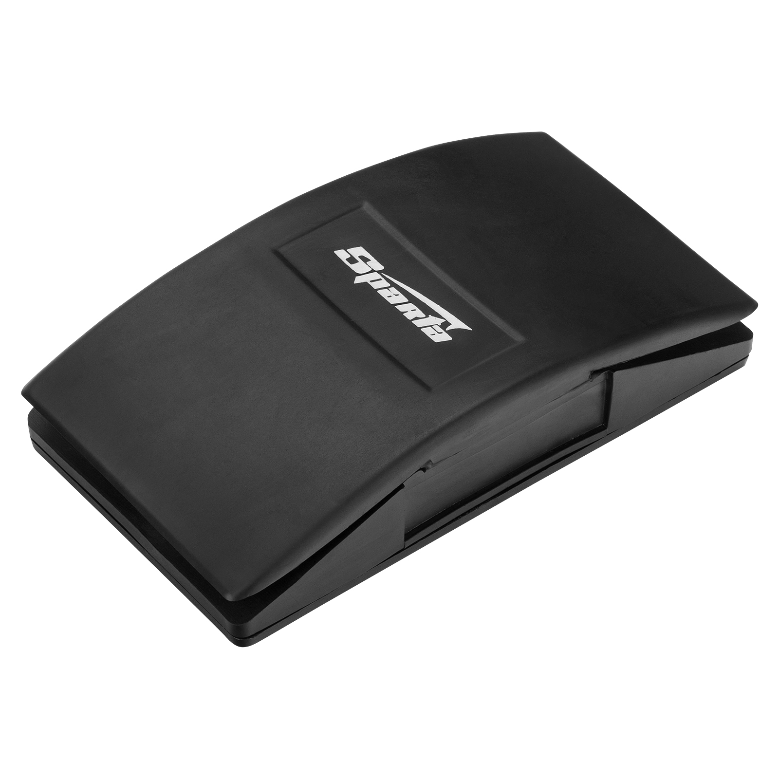 - Надежная фиксация абразивного материала — брусок имеет специальные зажимы с шипами.