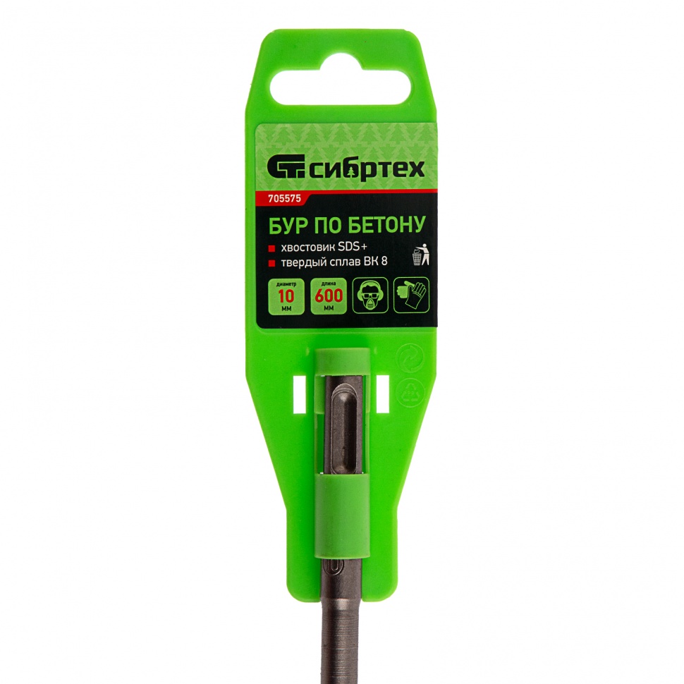 Бур по бетону Сибртех 705575 размером 10 х 600 мм предназначен для перфораторов с хвостовиком типа SDS Plus. Способен сверлить отверстия в материалах из бетона и кирпича, а также в искусственном и природном камне. Бур отлично подойдет для домашнего использования со средним объемом работ.