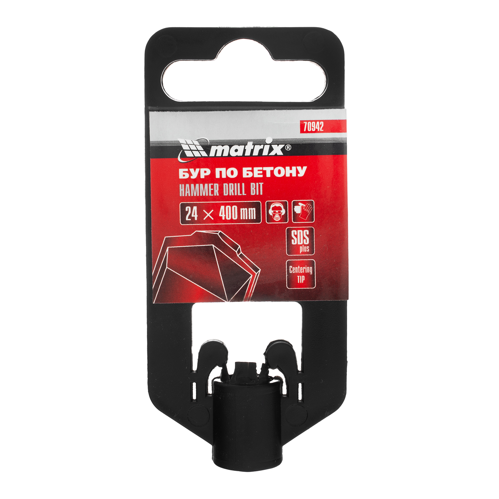 Бур по бетону Matrix 70942 длиной 400 мм, с хвостовиком SDS-plus, предназначен для установки на перфоратор и получения отверстий диаметром 24 мм в бетоне, камне и кирпиче. Позволяет эффективно решать поставленные задачи благодаря режущей пластине из высокотвердого сплава карбида вольфрама ВК8 твердостью 80-90 HRC.