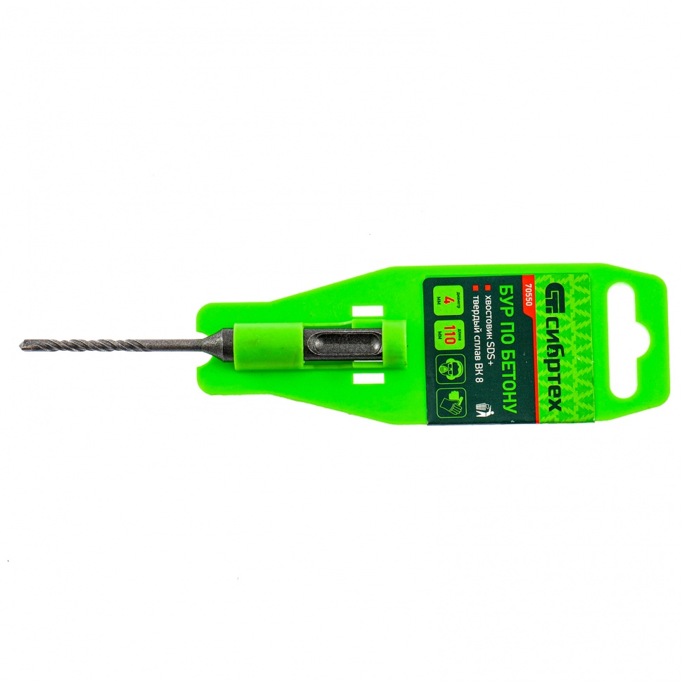 Бур по бетону Сибртех 70550 размером 4 х 110 мм предназначен для перфораторов с хвостовиком типа SDS Plus. Способен сверлить отверстия в материалах из бетона и кирпича, а также в искусственном и природном камне. Бур отлично подойдет для домашнего использования со средним объемом работ.