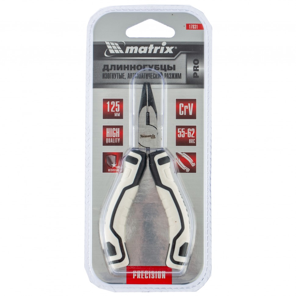 Изогнутые длинногубцы Matrix PRO Mini 17831 длиной 125 мм, с авторазжимом, пригодятся во время монтажных/демонтажных и ремонтных работ, например, починки бытовой техники. С их помощью удобно захватывать и удерживать мелкие детали, проволоку и провода. Мини-длинногубцы позволяют выполнять операции, требующие высокой точности и аккуратности. Изогнутые губки облегчают работу в труднодоступных местах.