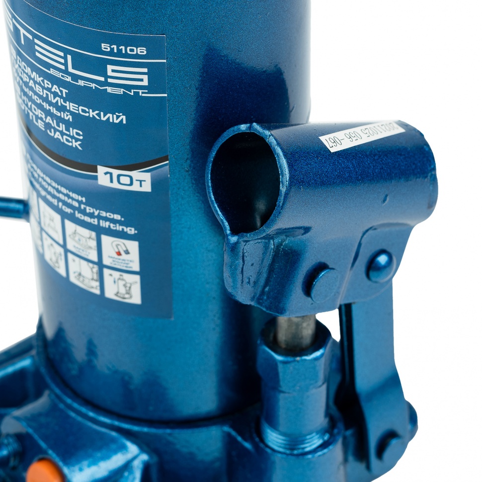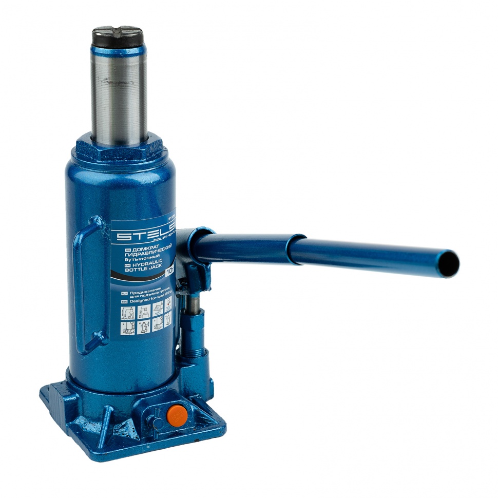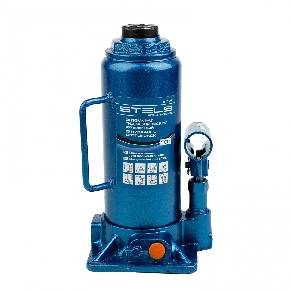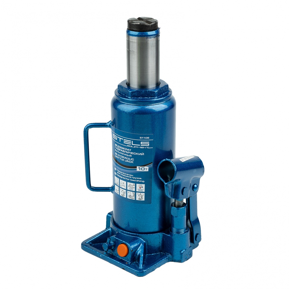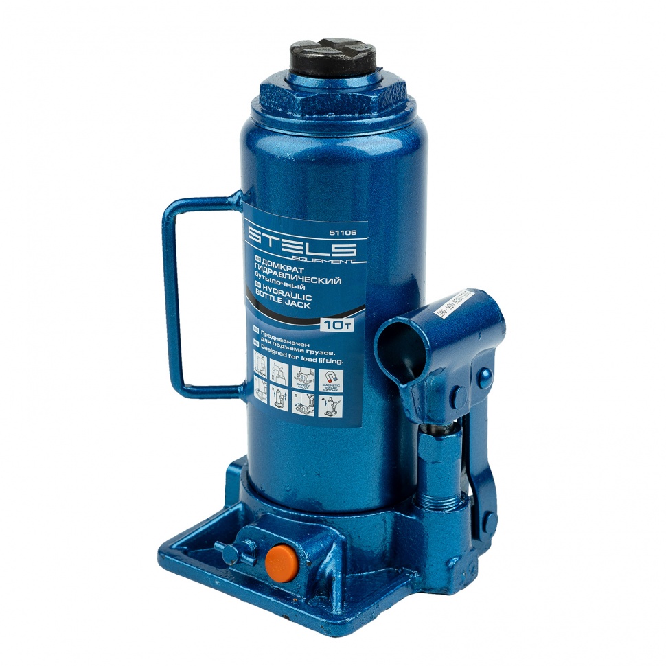 Гидравлический бутылочный домкрат Stels 51106 предназначен для поднятия грузов массой до 10 т на высоту с 230 до 460 мм. Позволяет установить жесткую опору под груз для последующего проведения ремонта. Будет полезен на станции техобслуживания, пригодится во время проведения ремонтно-строительных работ.