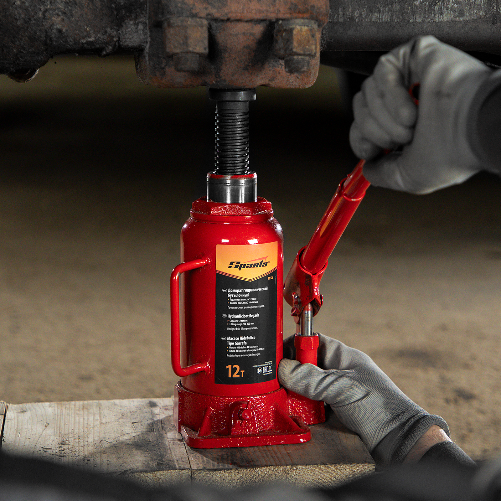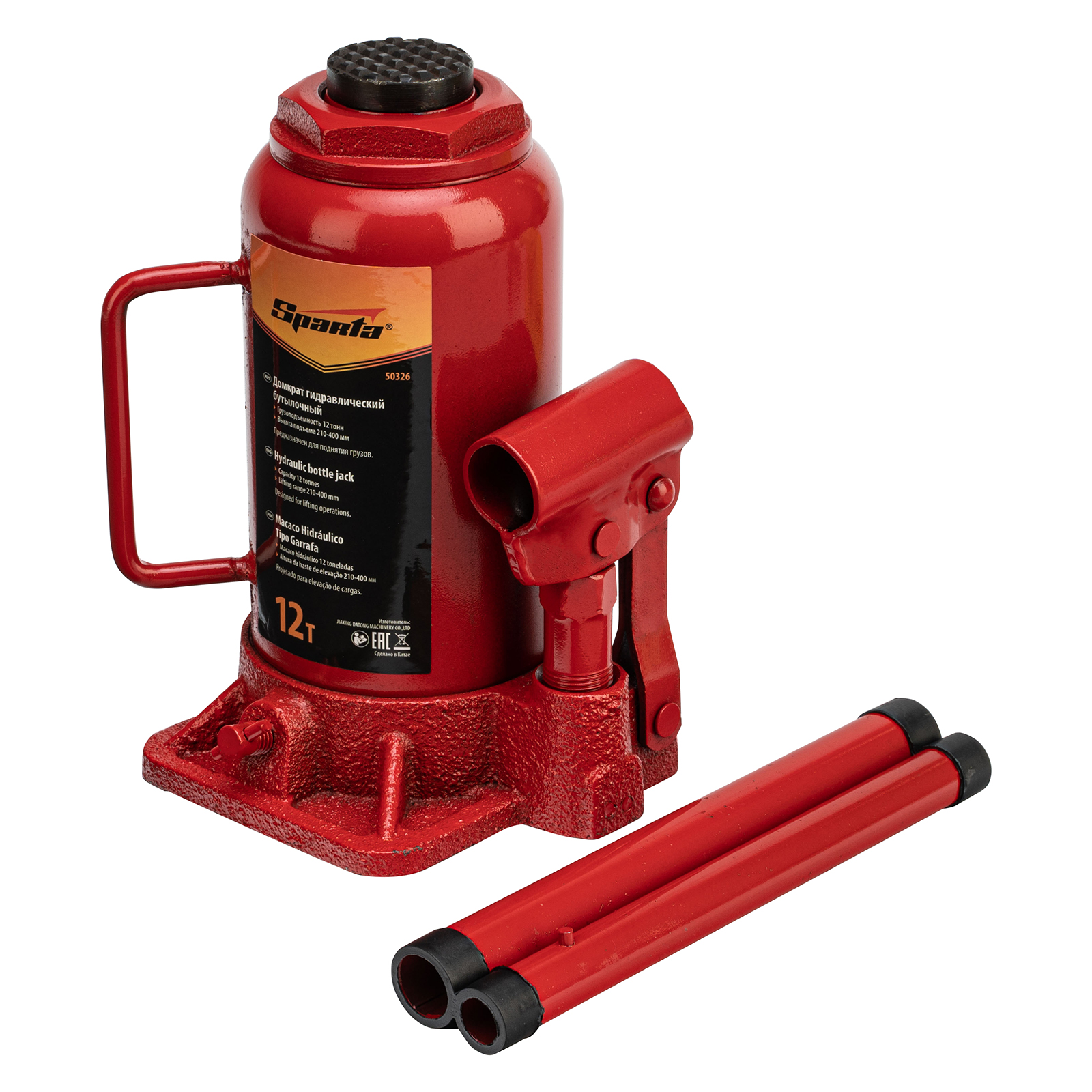 Гидравлический бутылочный домкрат Sparta 50326 рассчитан на подъем грузов весом до 12 т на высоту от 210 до 400 мм. Он пригодится как автолюбителям в гараже, так и профессиональным мастерам в автосервисах. Домкрат обеспечивает плавный подъем груза без особых усилий со стороны пользователя.