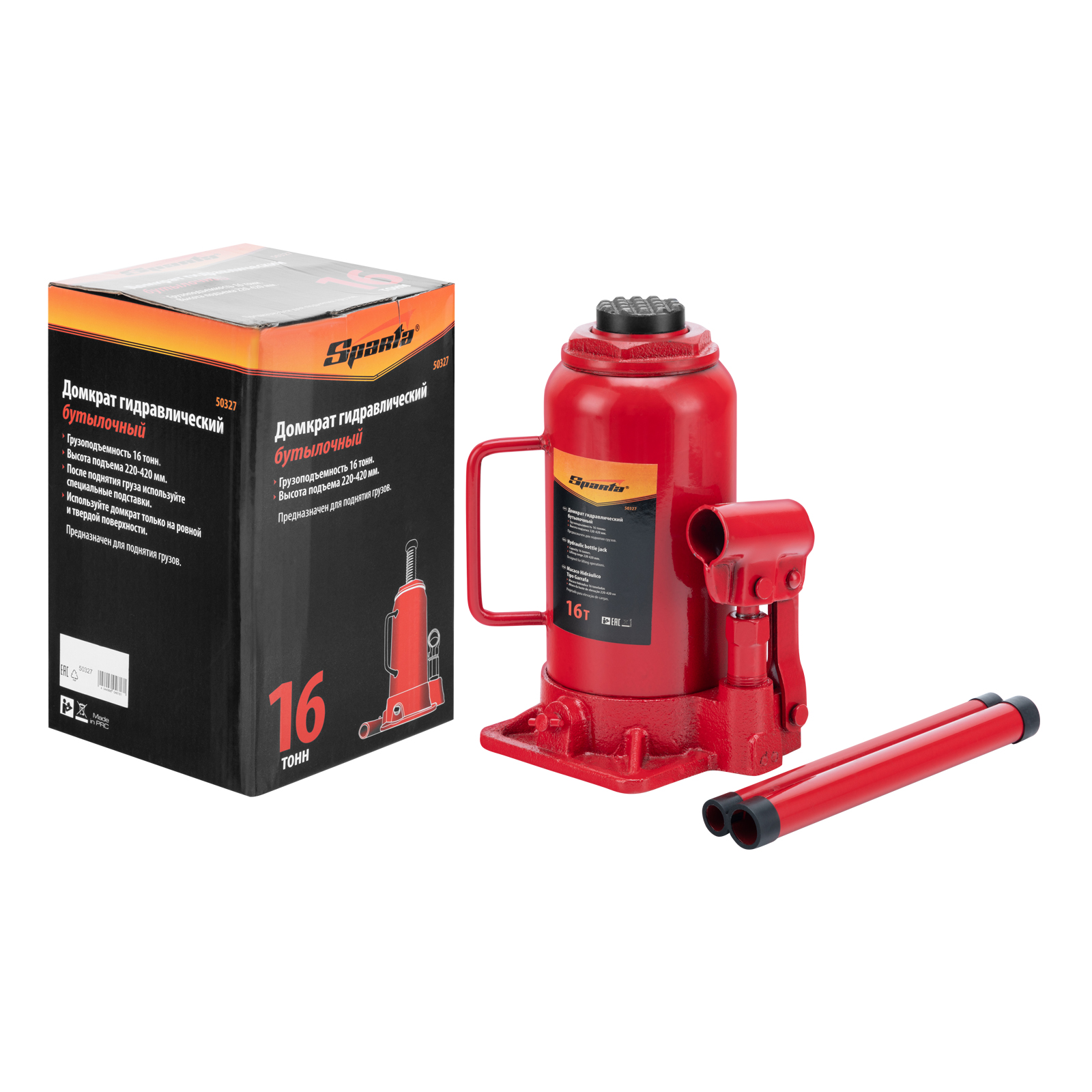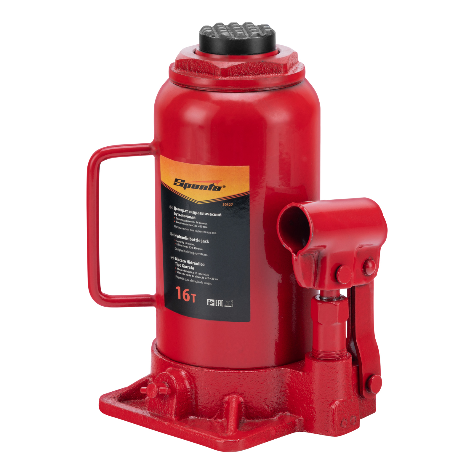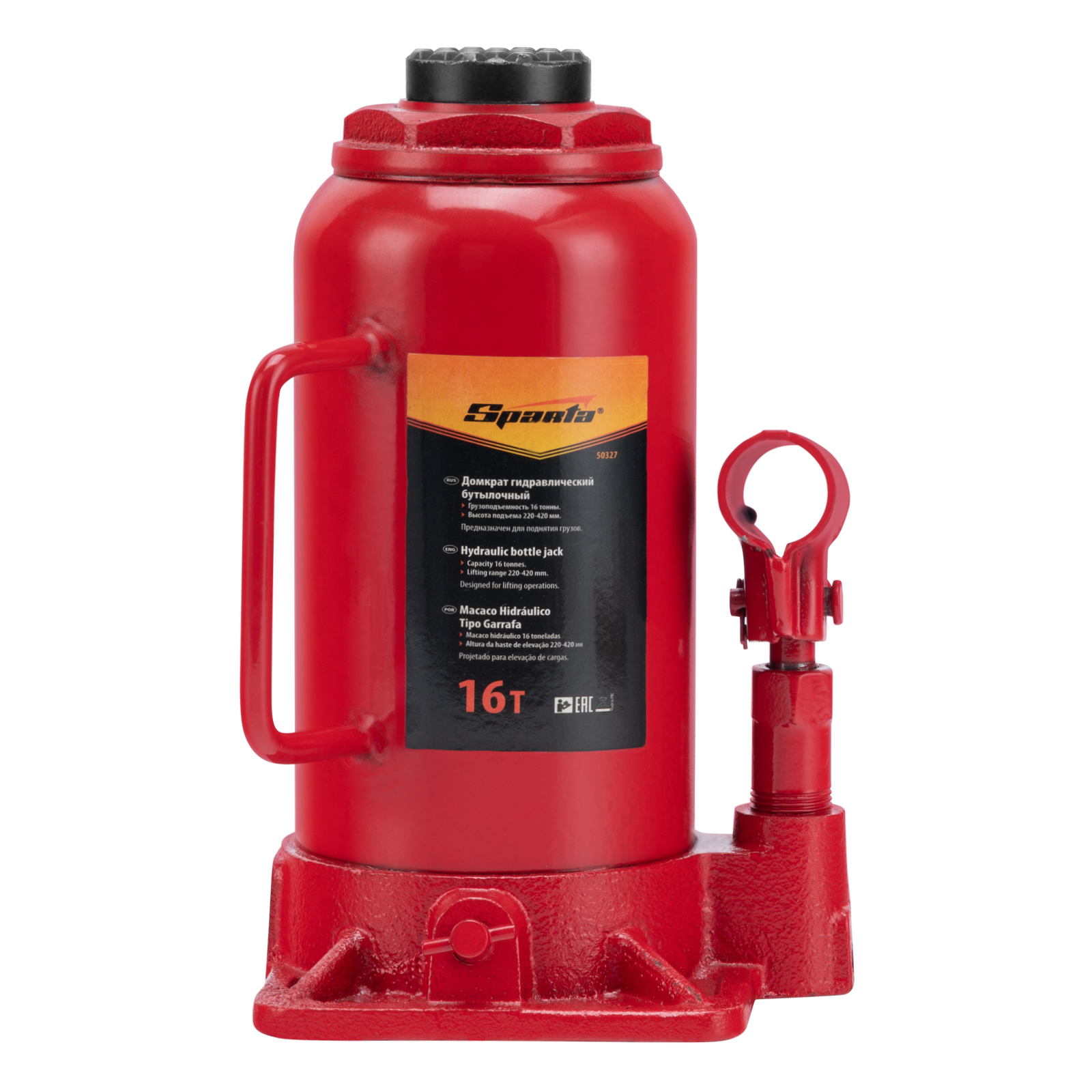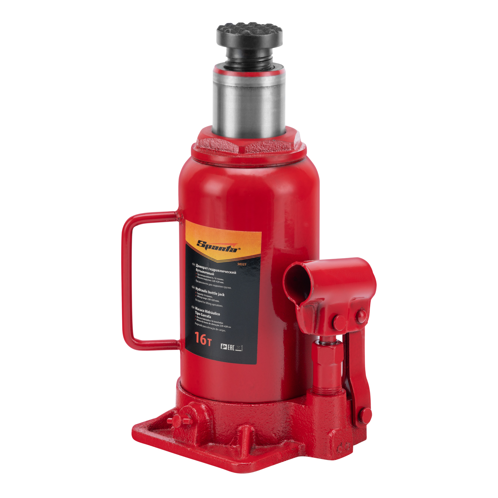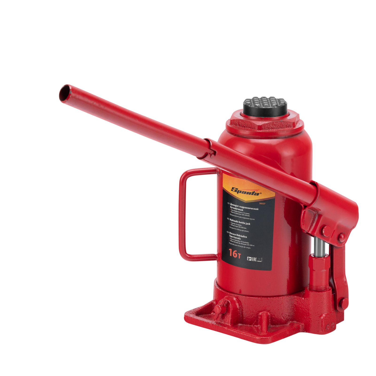 Гидравлический бутылочный домкрат Sparta 50327 рассчитан на подъем грузов весом до 16 т на высоту от 220 до 420 мм. Он пригодится как автолюбителям в гараже, так и профессиональным мастерам в автосервисах. Домкрат обеспечивает плавный подъем груза без особых усилий со стороны пользователя.