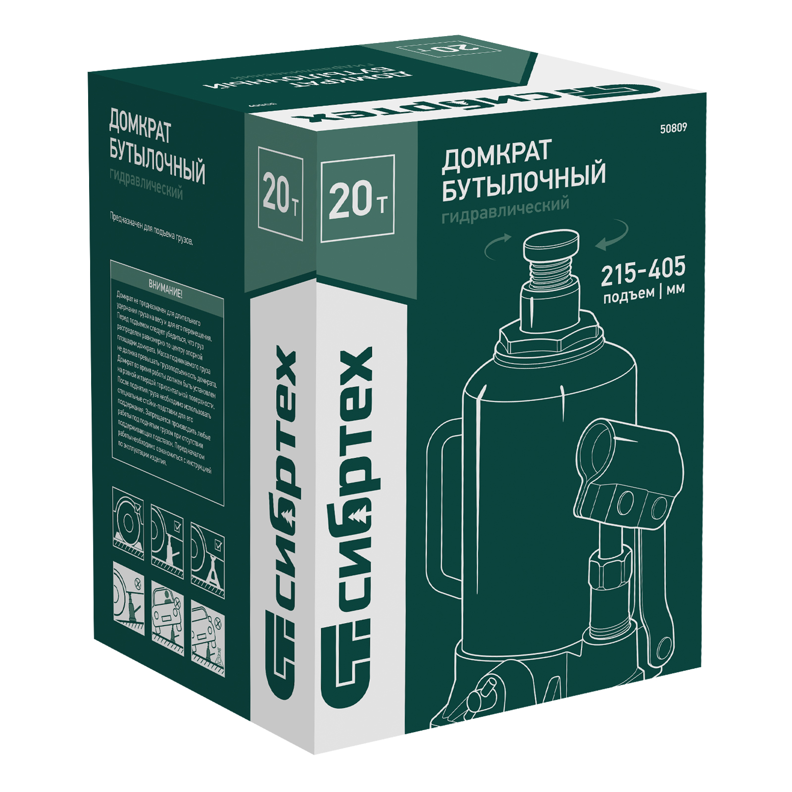 Домкрат гидравлический бутылочный Сибртех 50809 предназначен для подъема грузов массой до 20 т на высоту от 215 до 405 мм. Не требует больших усилий от пользователя и значительно облегчает рабочий процесс. Домкрат будет полезен при проведении техобслуживания машины в автосервисе или гараже.