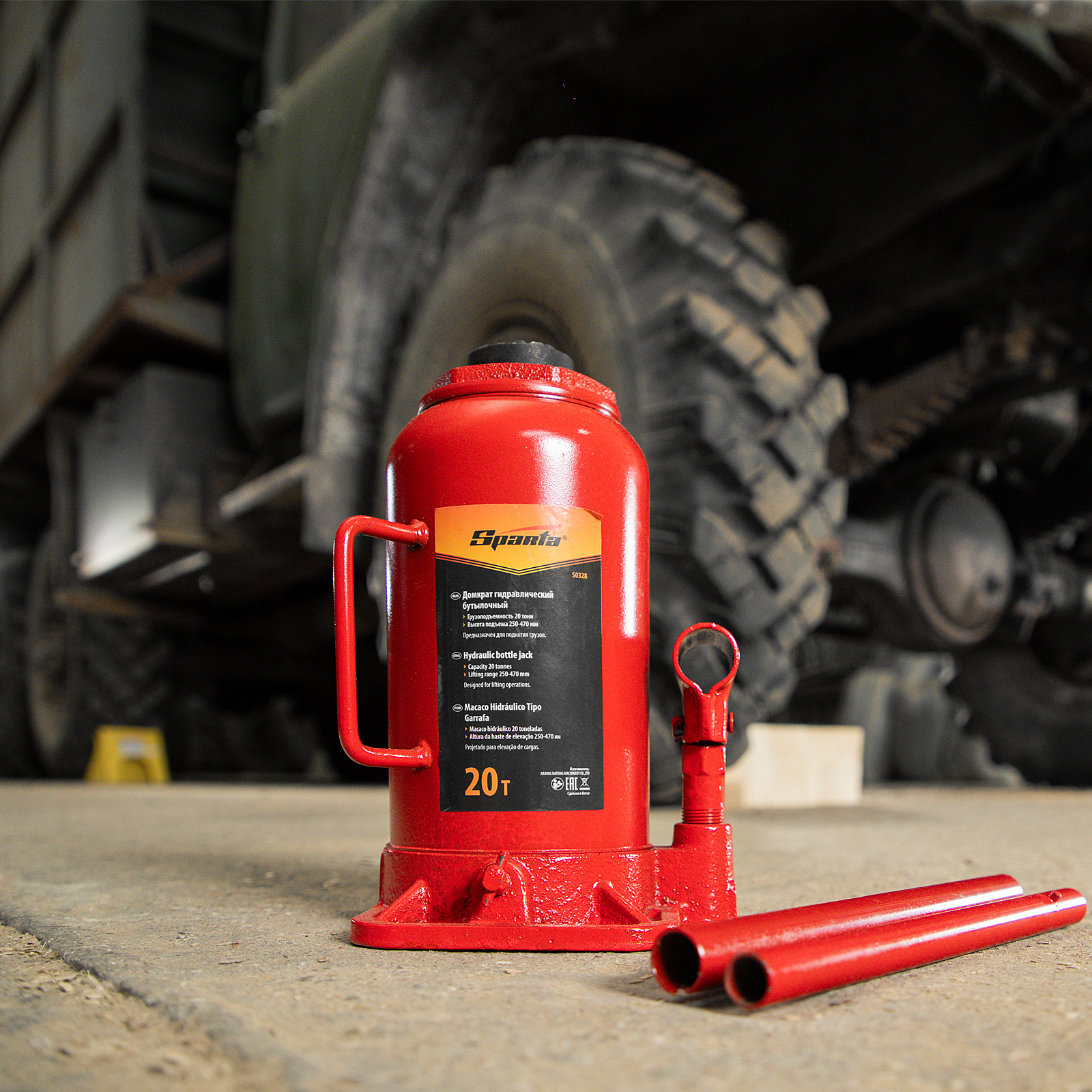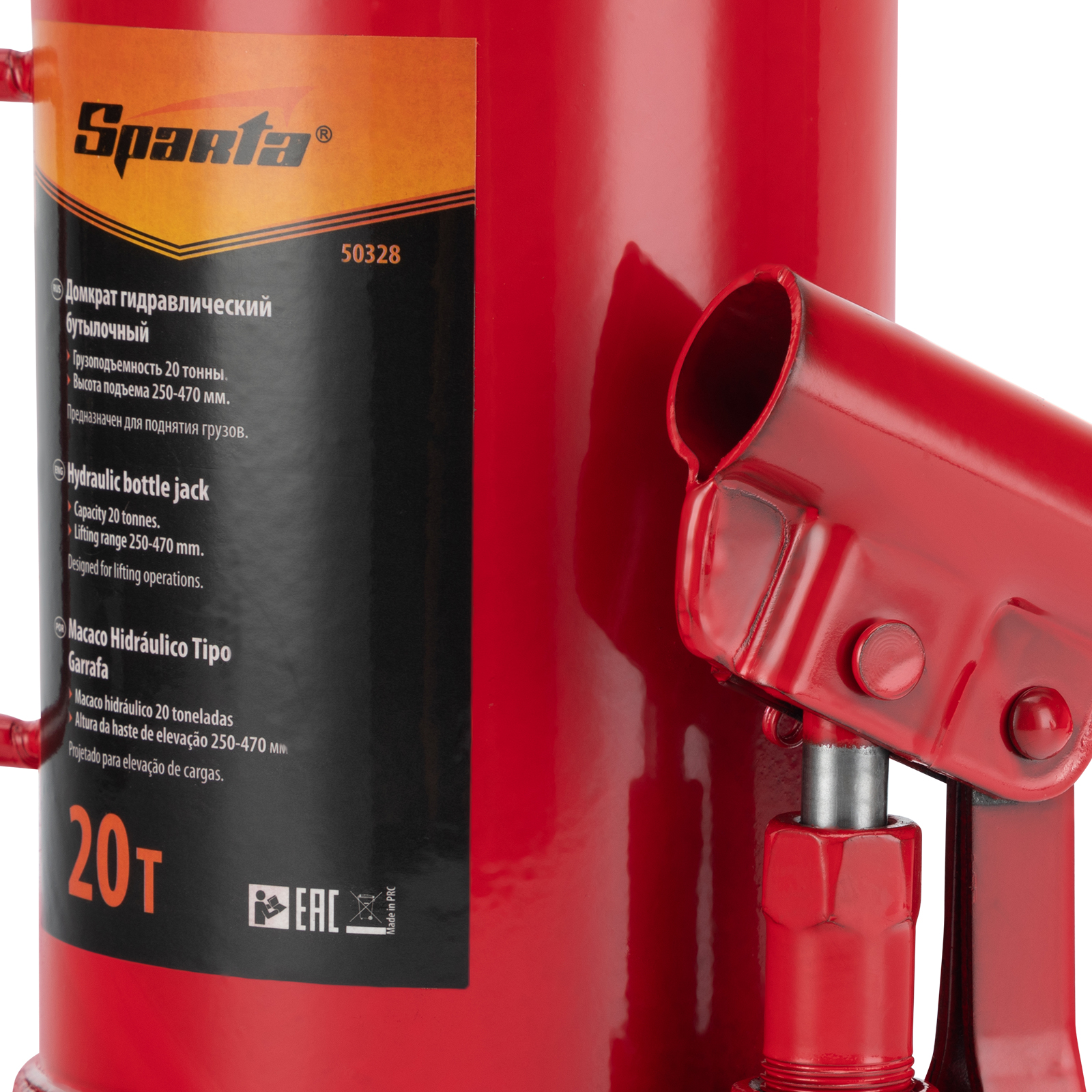 Гидравлический бутылочный домкрат Sparta 50328 рассчитан на подъем грузов весом до 20 т на высоту от 250 до 470 мм. Он пригодится как автолюбителям в гараже, так и профессиональным мастерам в автосервисах. Домкрат обеспечивает плавный подъем груза без особых усилий со стороны пользователя.