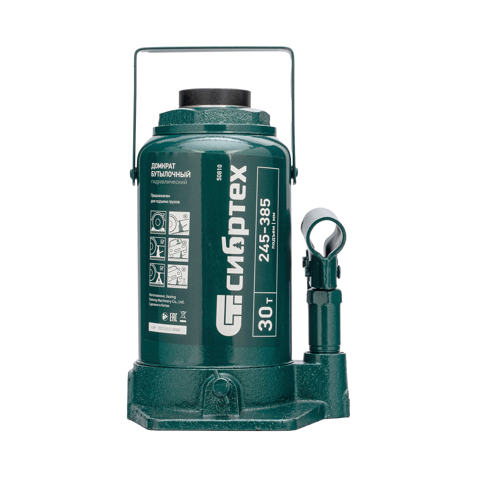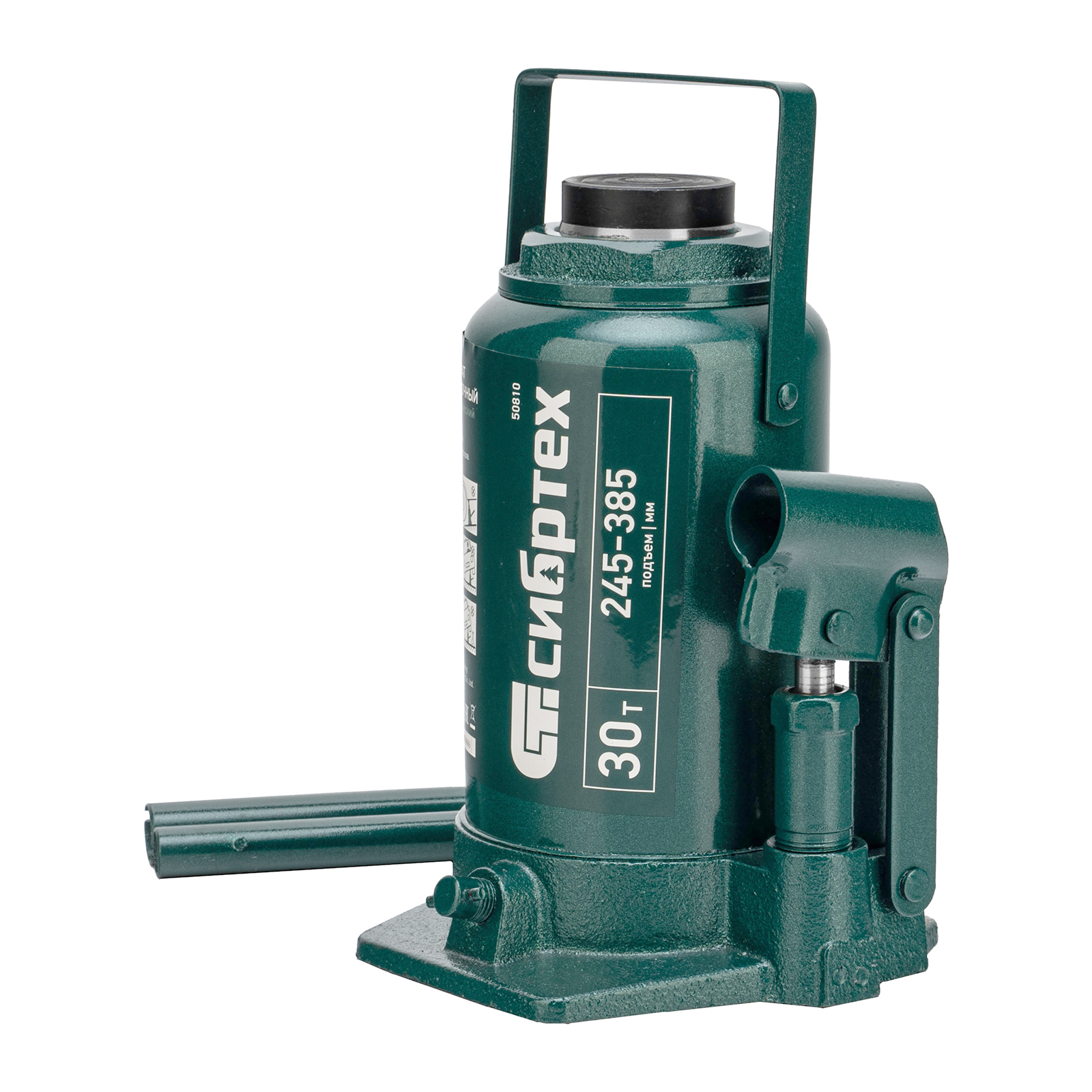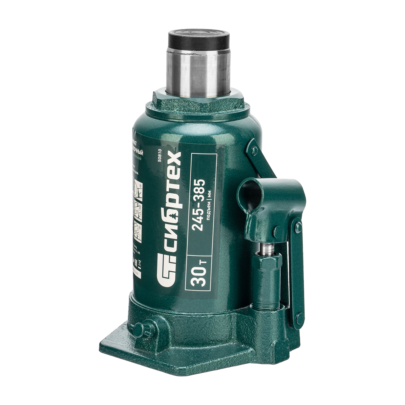 Домкрат гидравлический бутылочный Сибртех 50810 предназначен для подъема грузов массой до 30 т на высоту от 245 до 385 мм. Будет полезен при проведении техобслуживания машины в автосервисе или гараже.