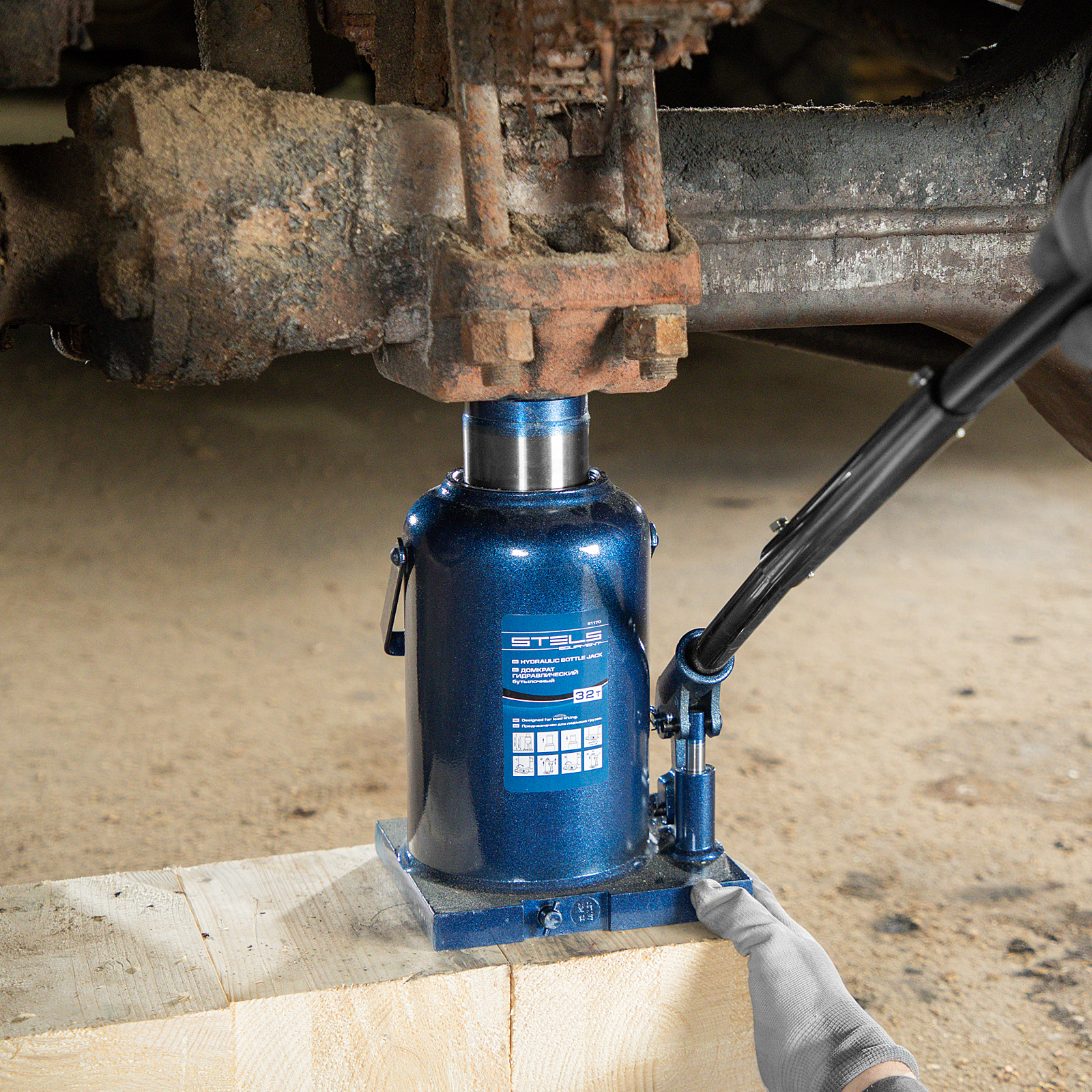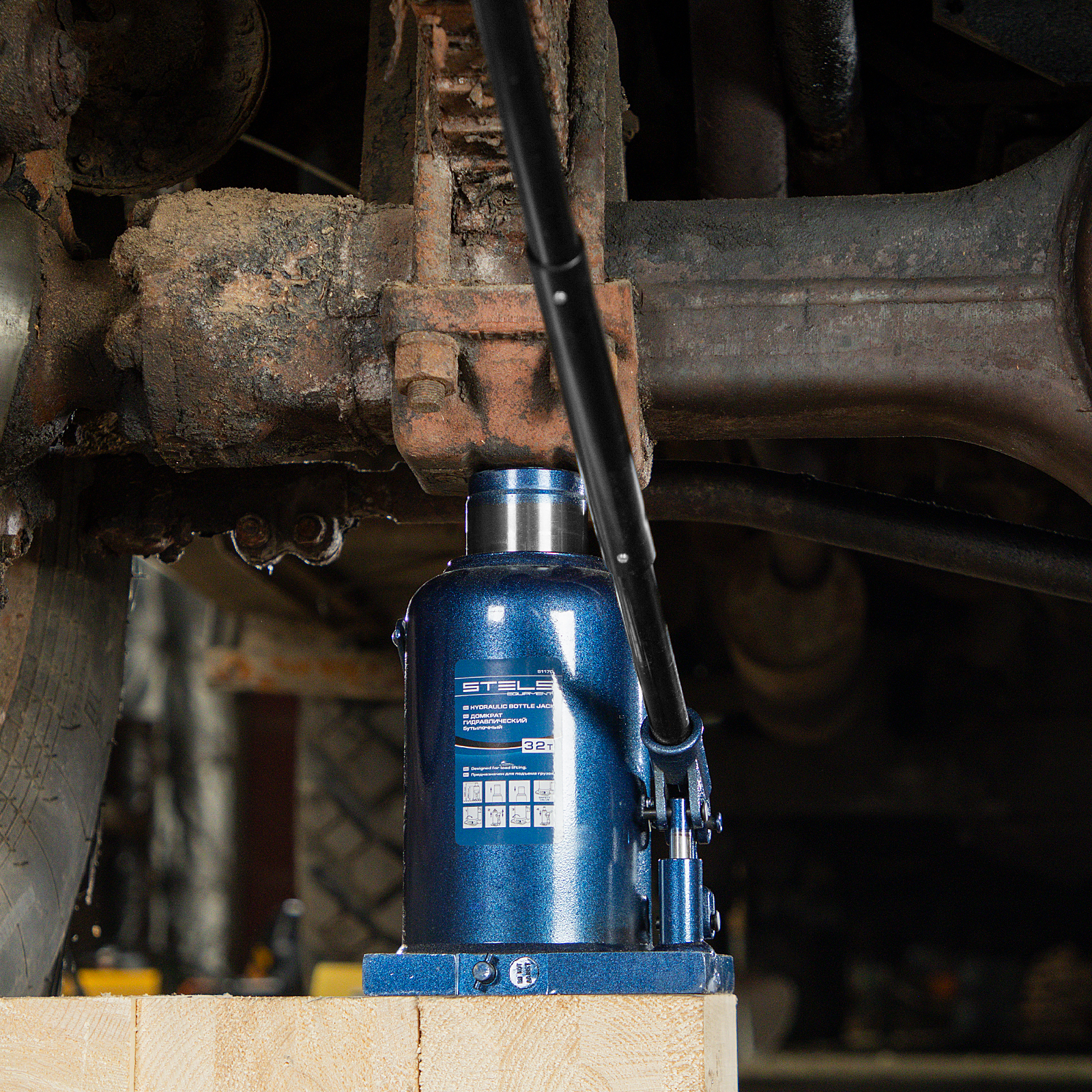 - Безопасная эксплуатация — благодаря предохранительному клапану домкрат не поднимает грузы тяжелее 32 т.