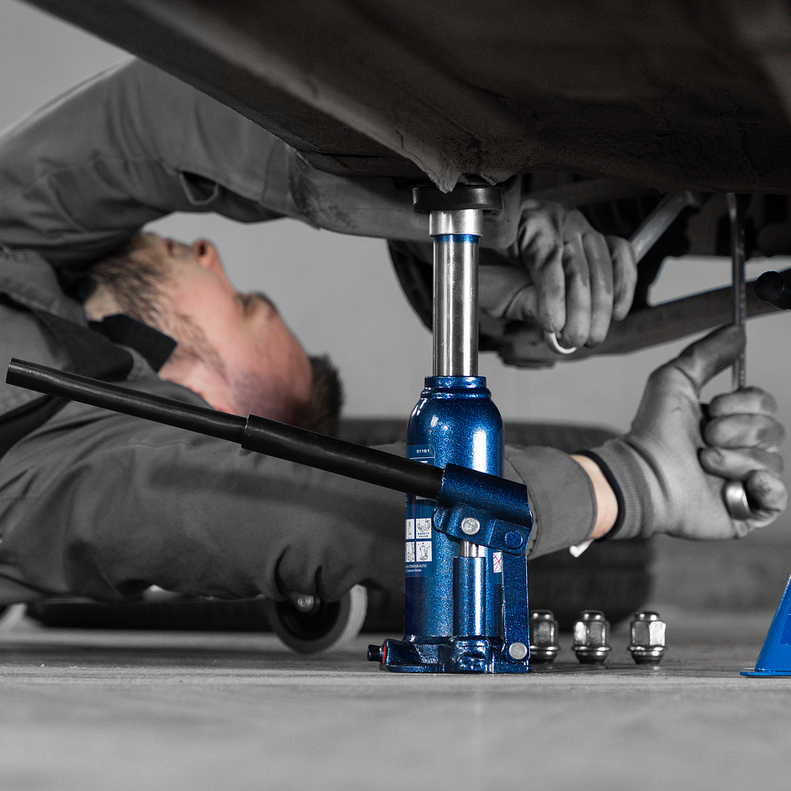 - Безопасная эксплуатация — благодаря предохранительному клапану домкрат не поднимает грузы тяжелее 3000 кг.