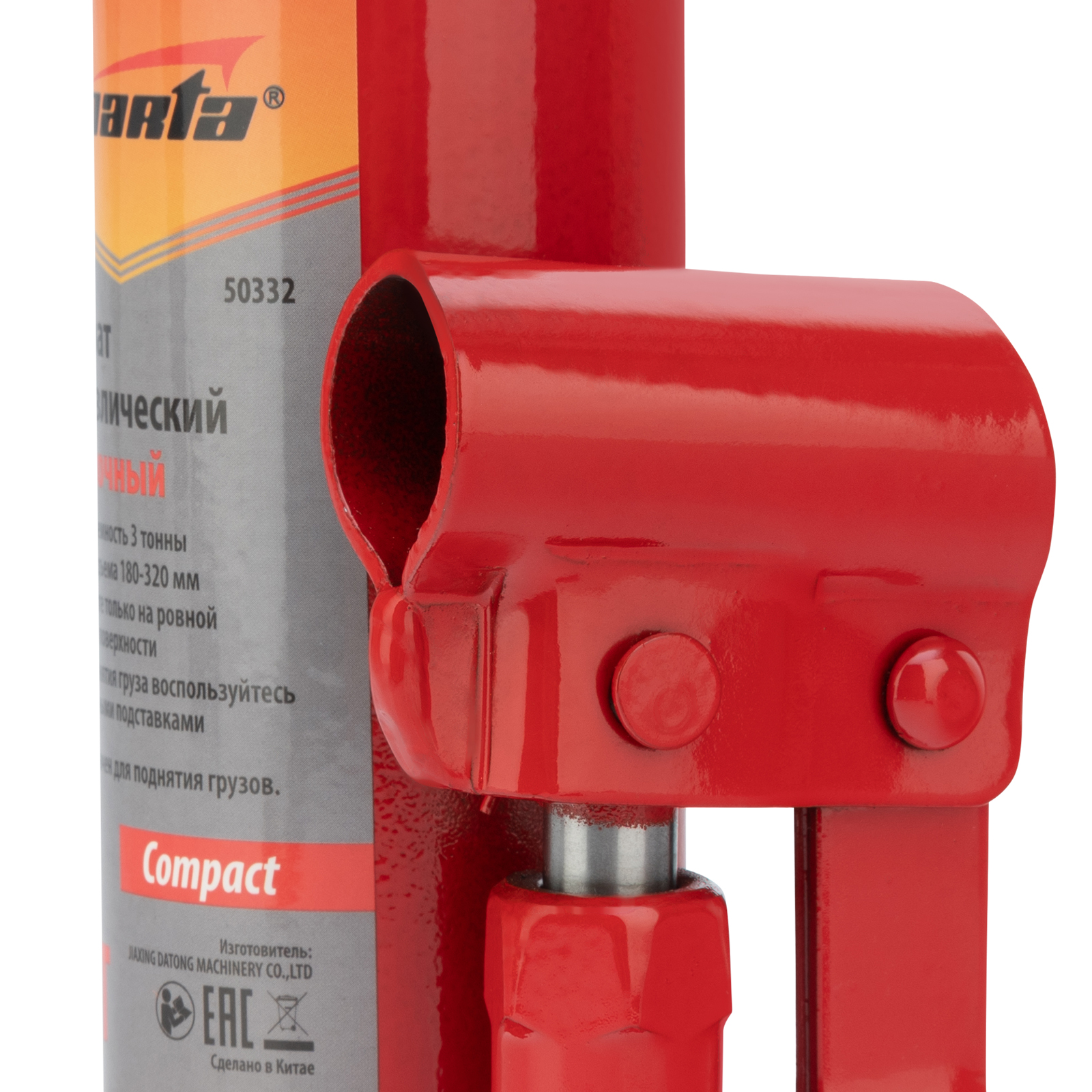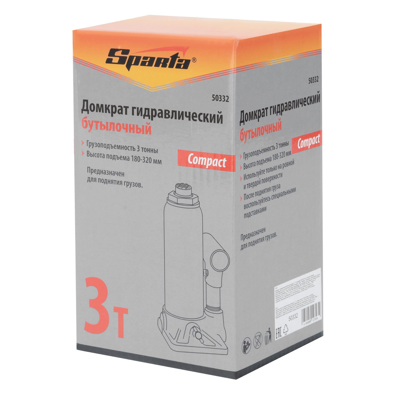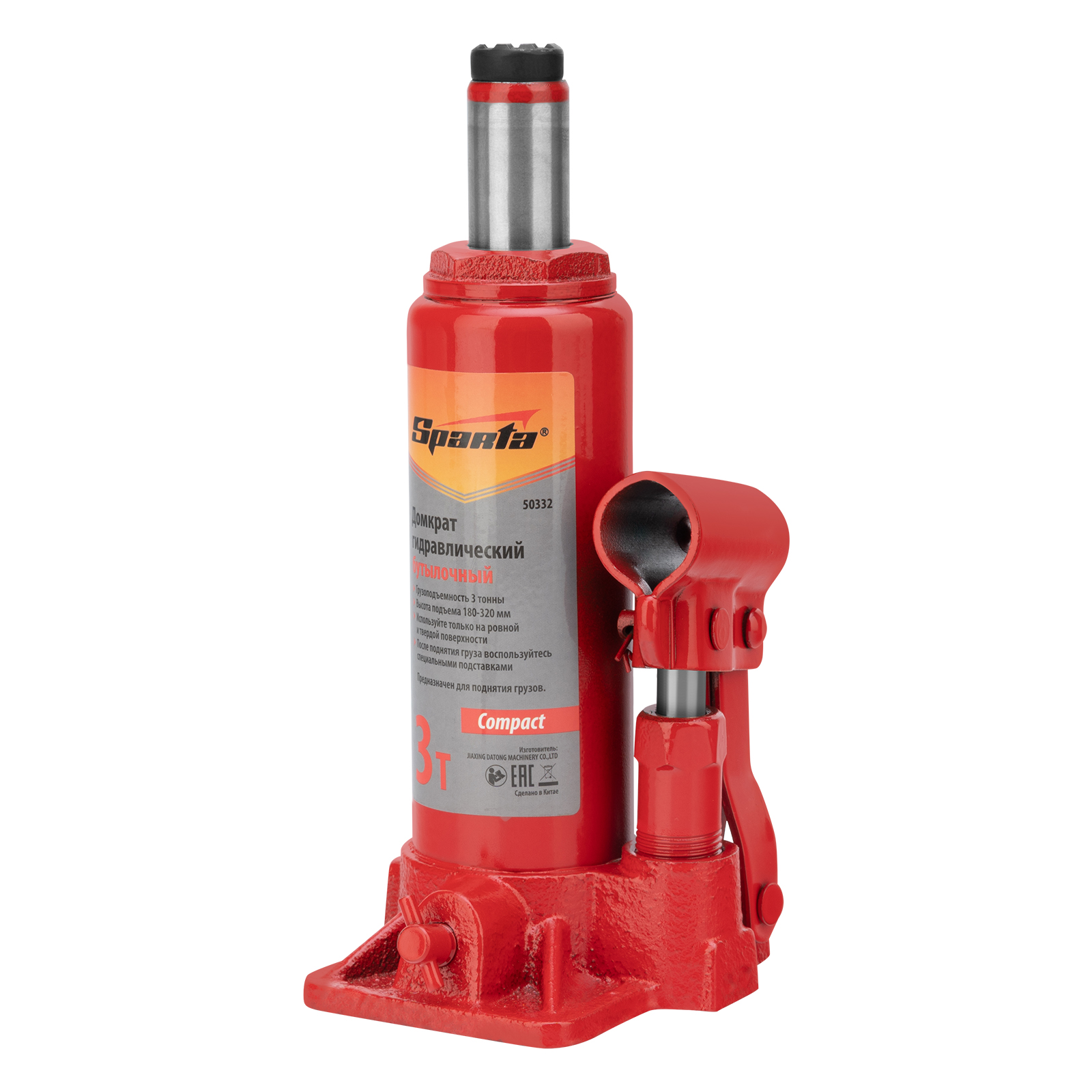 Гидравлический бутылочный домкрат Sparta Compact 50332 предназначен для подъема грузов весом до 3 т на высоту 180-320 мм. Существенно облегчает рабочий процесс, т.к. не требует больших усилий от пользователя. Домкрат будет полезен в автосервисе и гараже для проведения технического обслуживания авто.