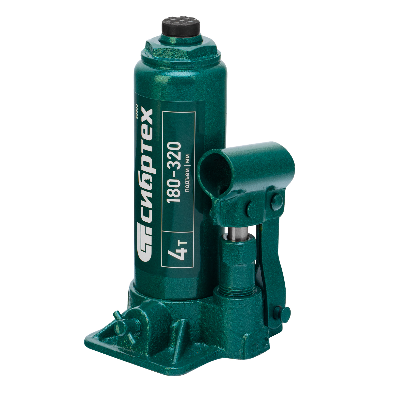 Домкрат гидравлический бутылочный Сибртех 50802 предназначен для подъема грузов массой до 4 т на высоту от 180 до 320 мм. Не требует больших усилий от пользователя и значительно облегчает рабочий процесс. Домкрат будет полезен при проведении техобслуживания машины в автосервисе или гараже.