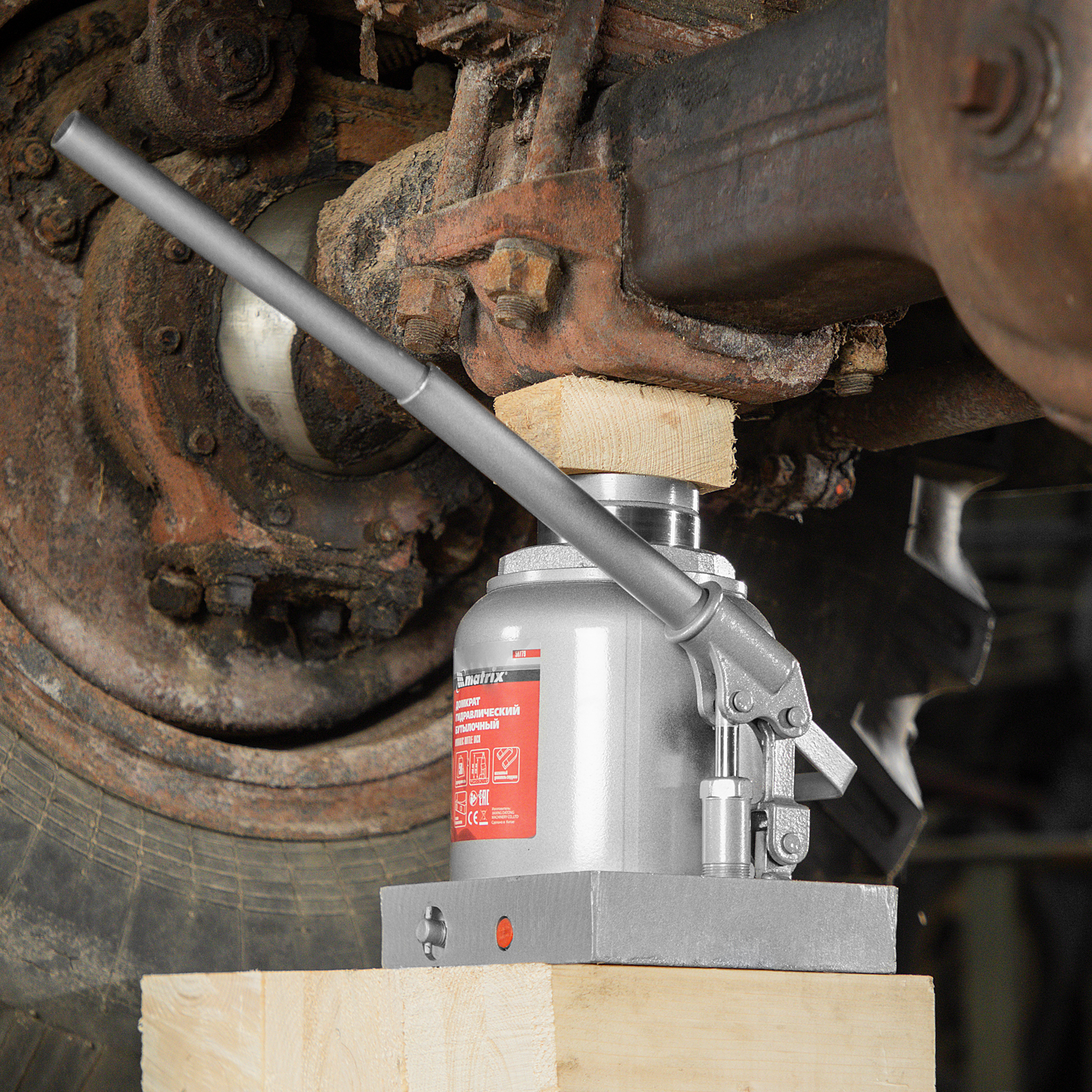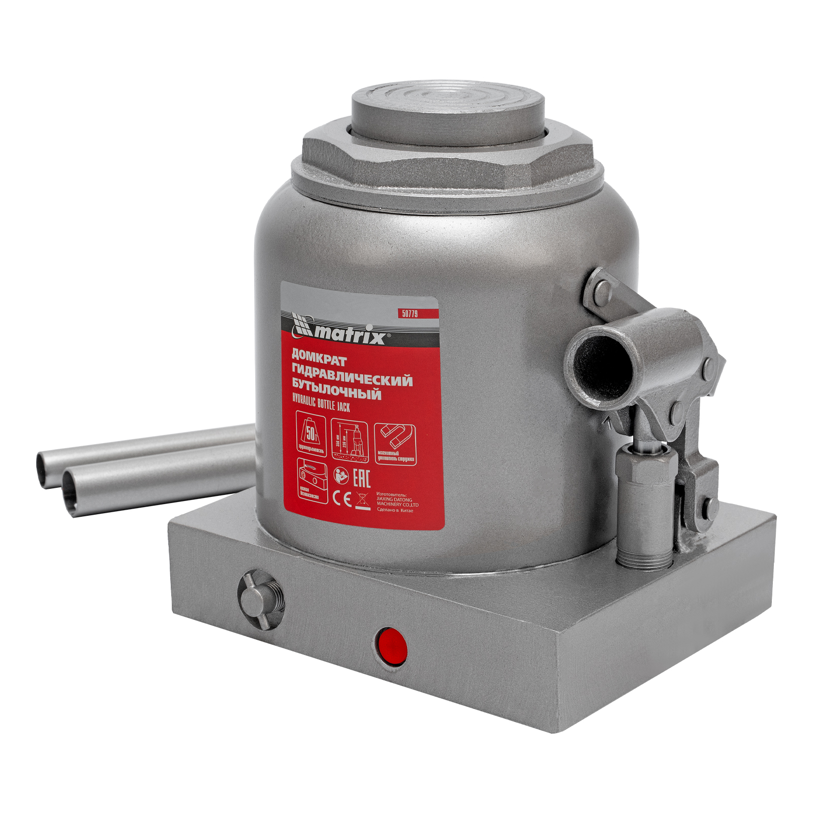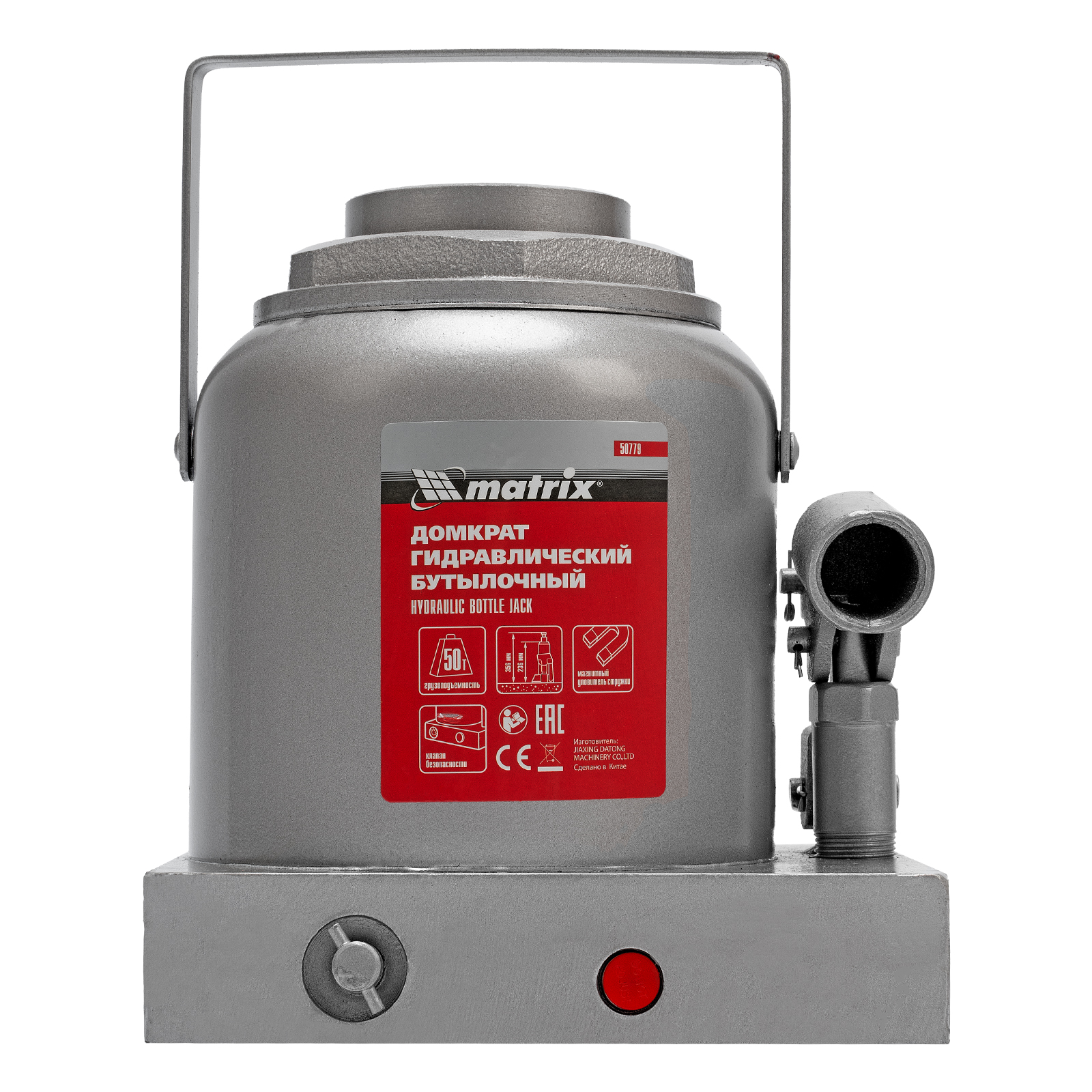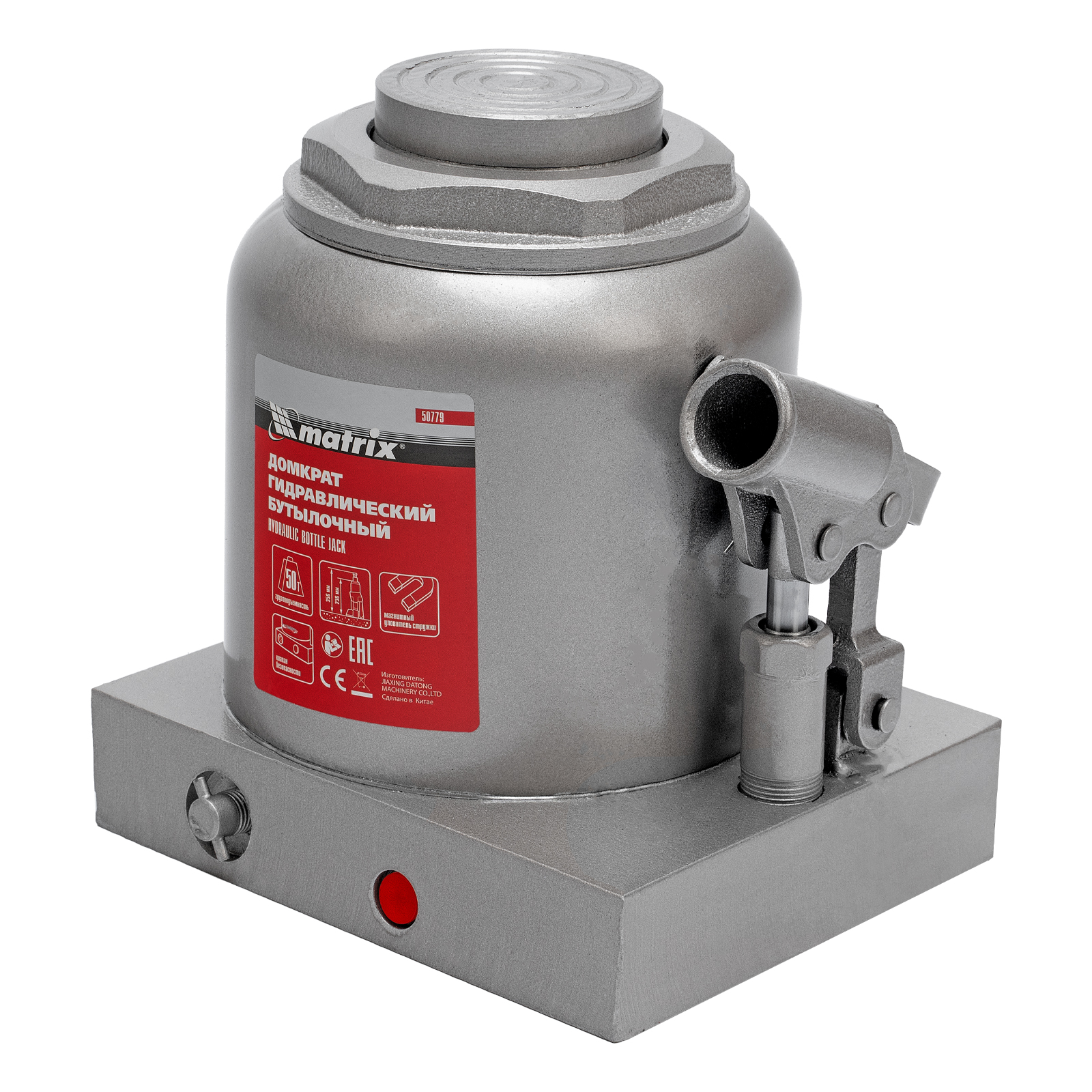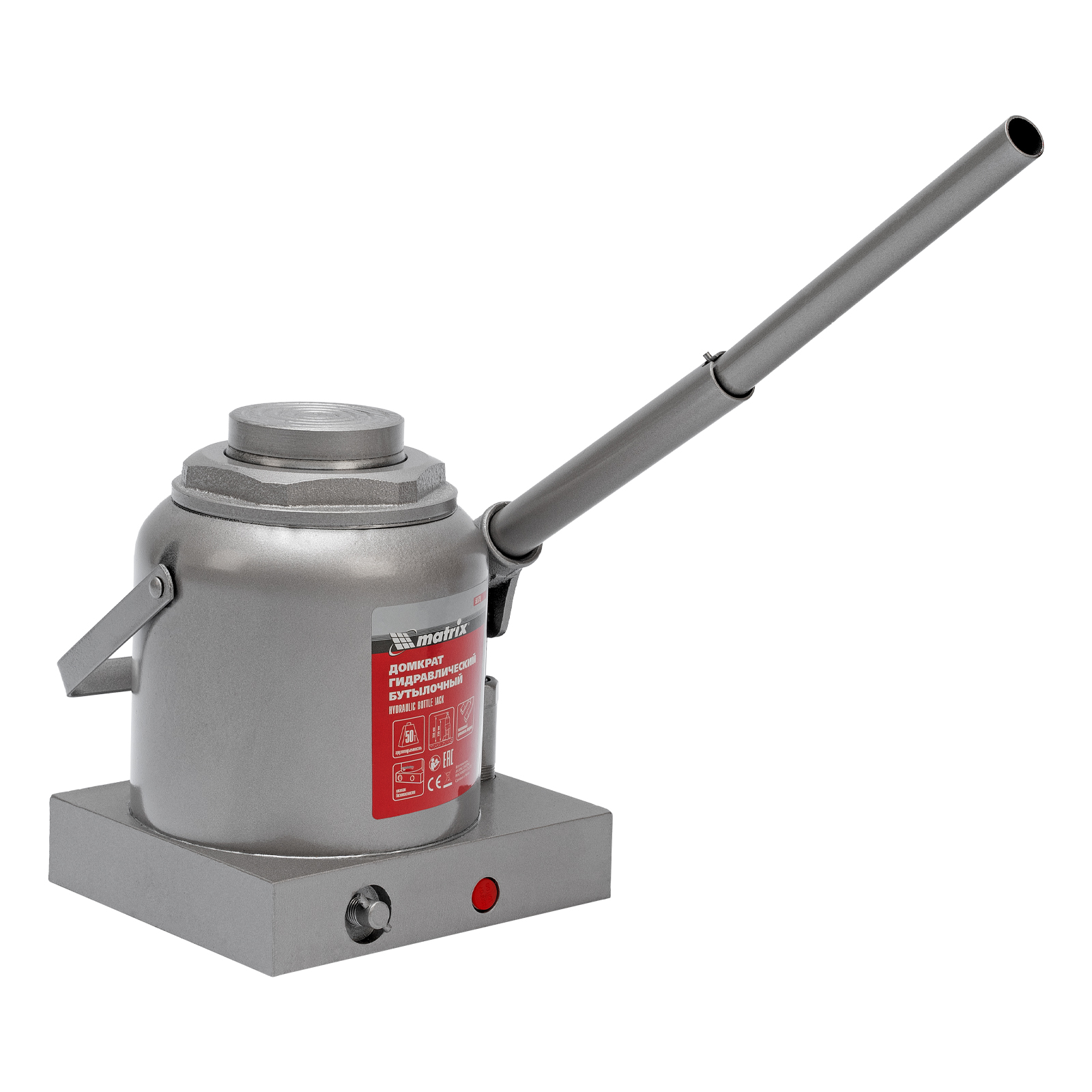 Гидравлический бутылочный домкрат Matrix 50779 поднимает грузы весом до 50 т на высоту 236-356 мм и может использоваться в гараже, на станции ТО или строительной площадке. Встроенный магнитный уловитель собирает металлическую стружку, образующуюся в процессе работы, что защищает домкрат от преждевременного износа.