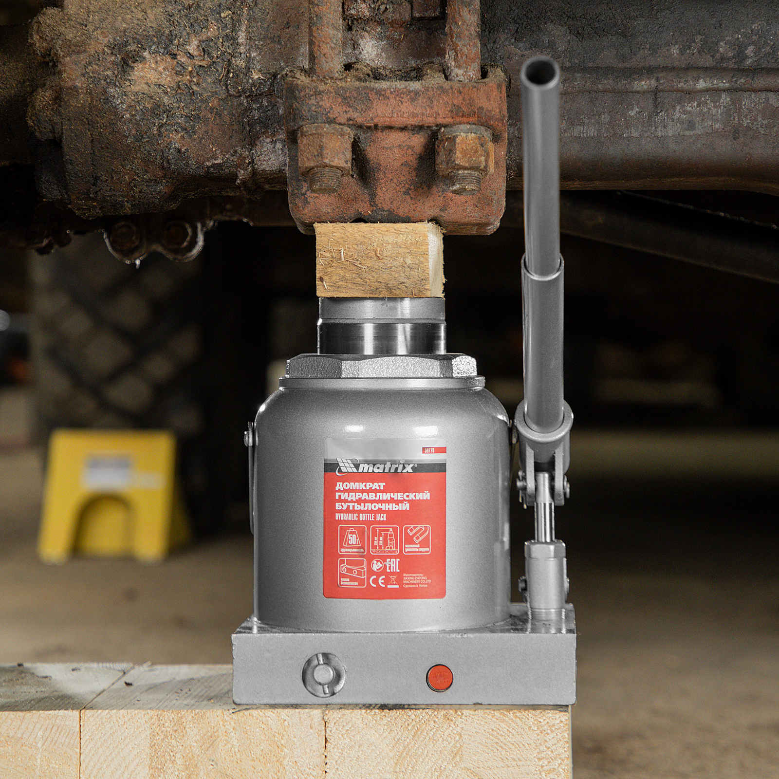 - Защита от перегрузок — благодаря клапану безопасности домкрат не поднимает грузы массой более 50 т.