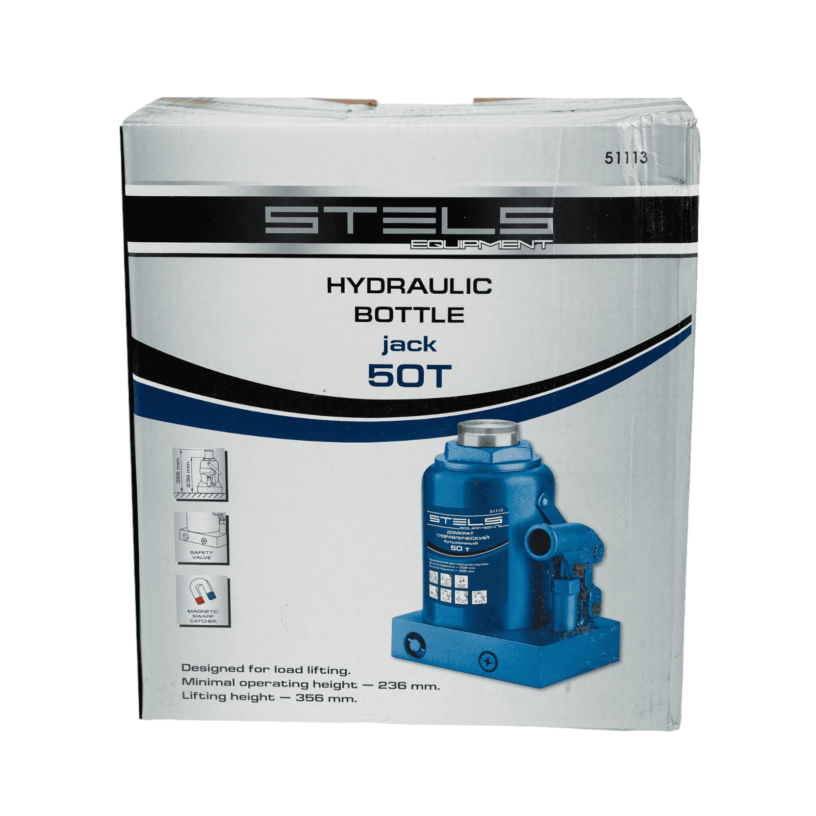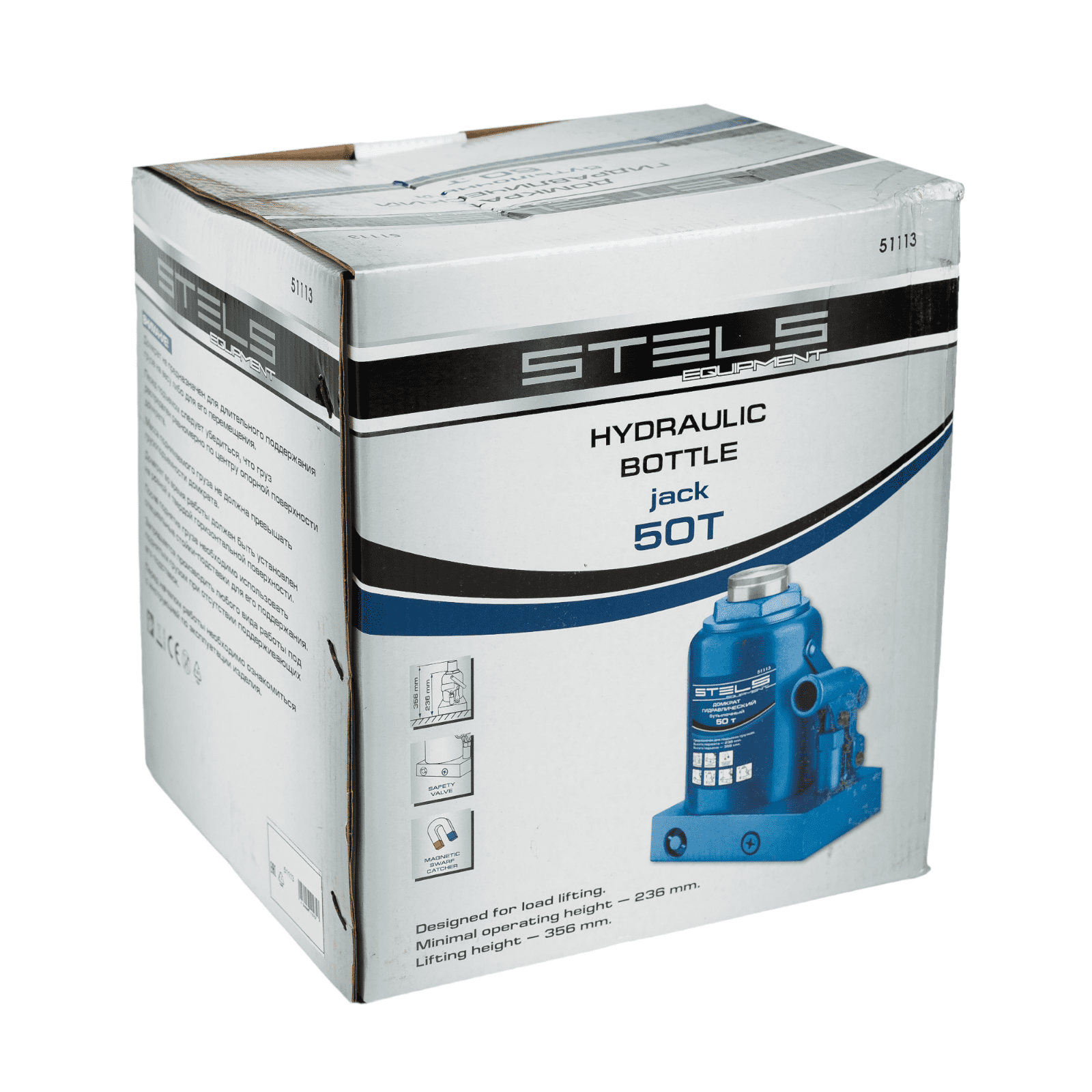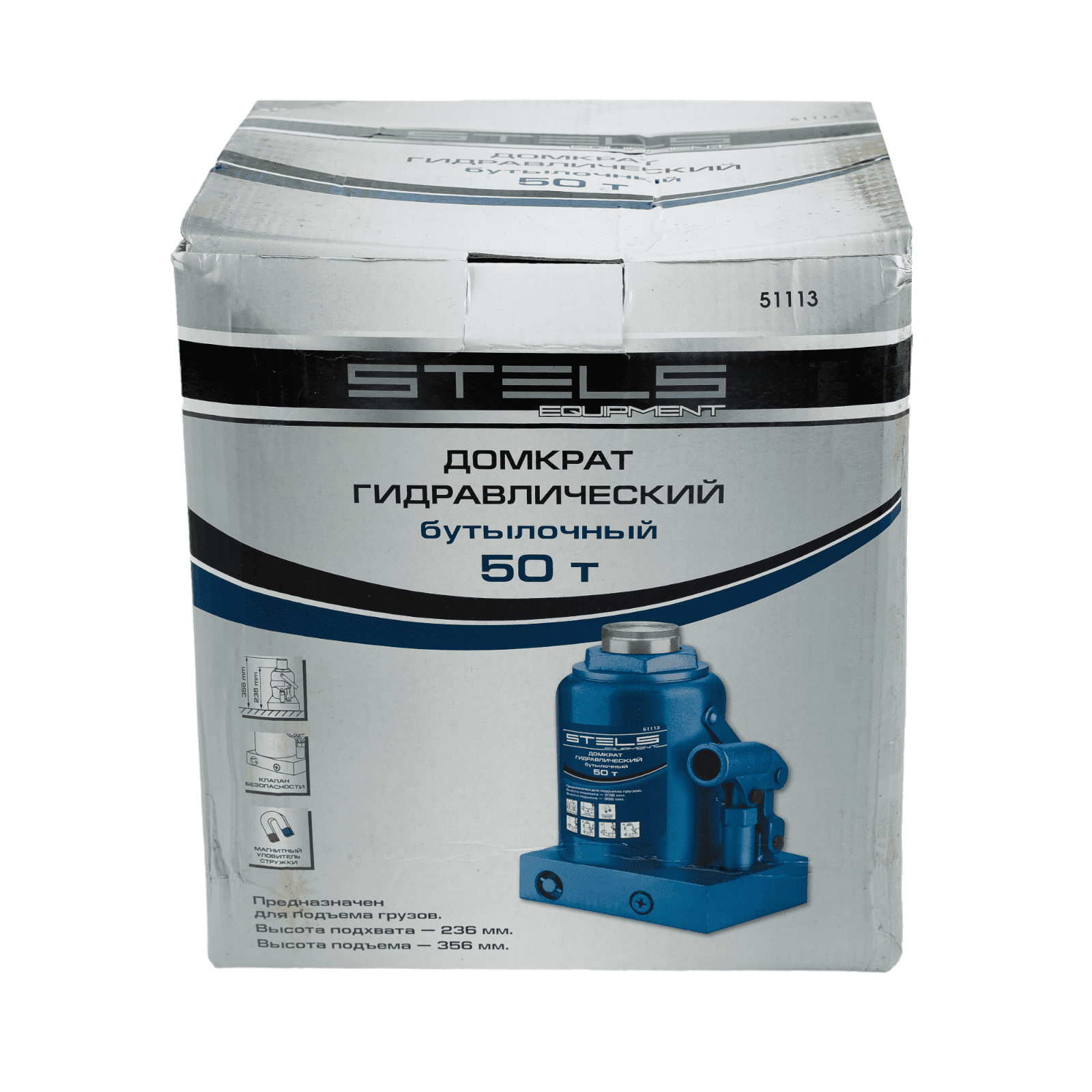 Гидравлический бутылочный домкрат Stels 51113 способен поднимать грузы массой до 50 т на высоту с 236 до 356 мм. Устанавливается на ровной твердой горизонтальной поверхности и позволяет разместить под грузом жесткую опору перед выполнением дальнейших работ. Используется на предприятиях автосервиса, применяется во время ремонта и строительства.