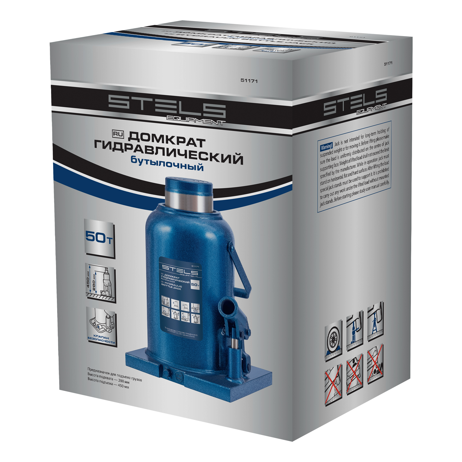 Гидравлический бутылочный домкрат Stels 51171 применяется для быстрого поднятия грузов весом до 50 т на высоту 280-450 мм. Оптимален для автомобилей с большим клиренсом. Домкрат будет полезен автолюбителям и профессионалам для ремонта транспортного средства.