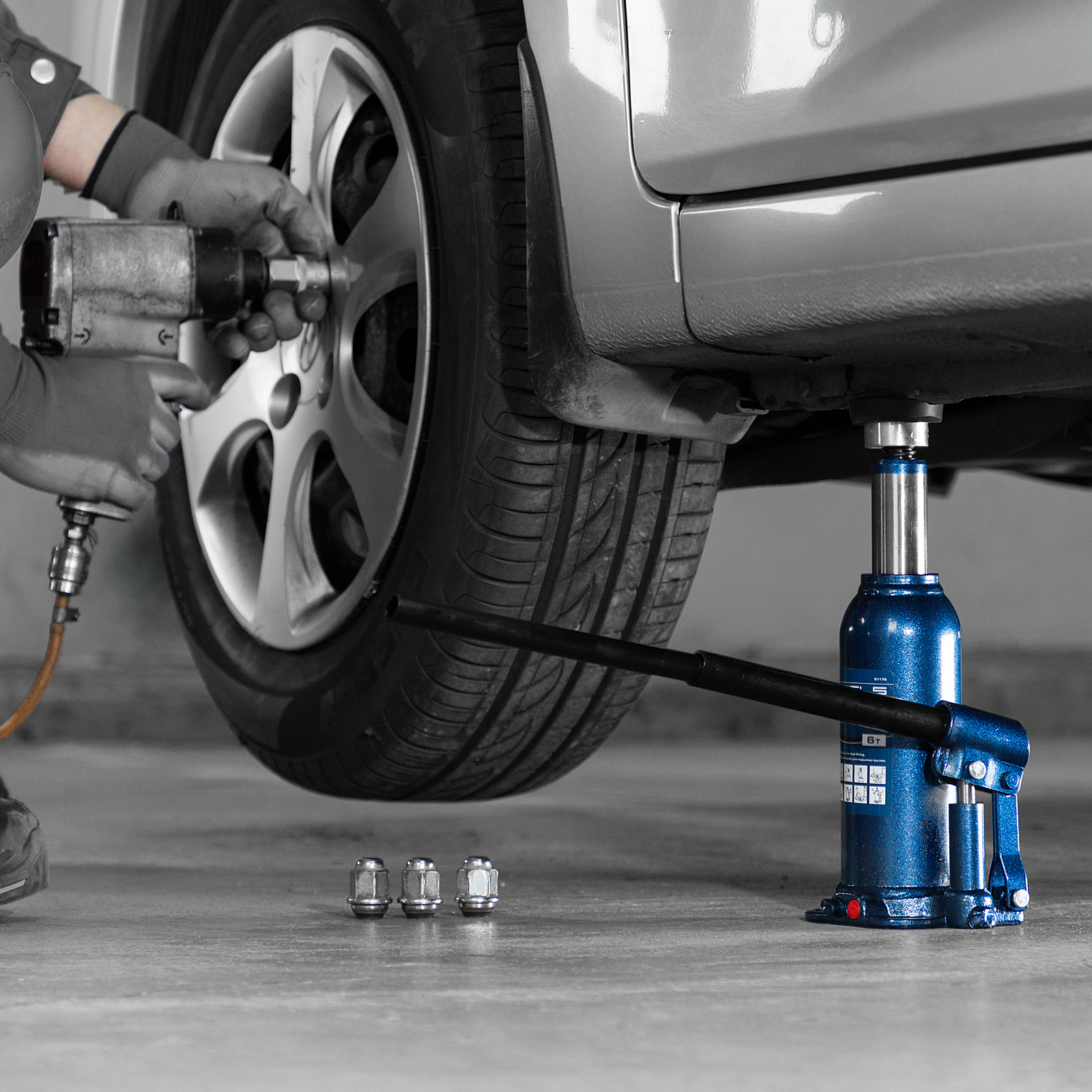 - Безопасная эксплуатация — благодаря предохранительному клапану домкрат не поднимает грузы тяжелее 6000 кг.