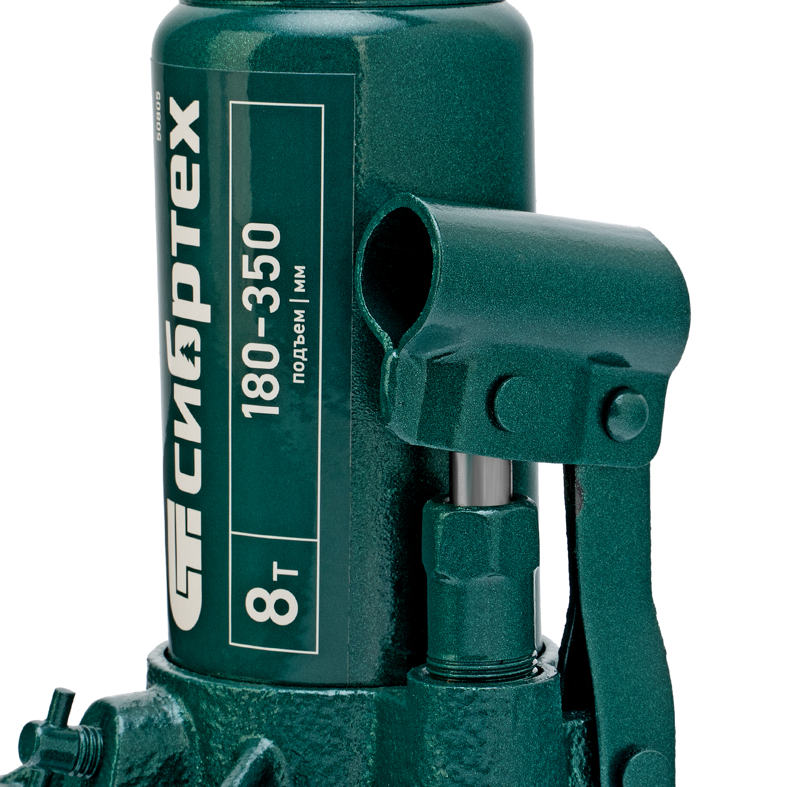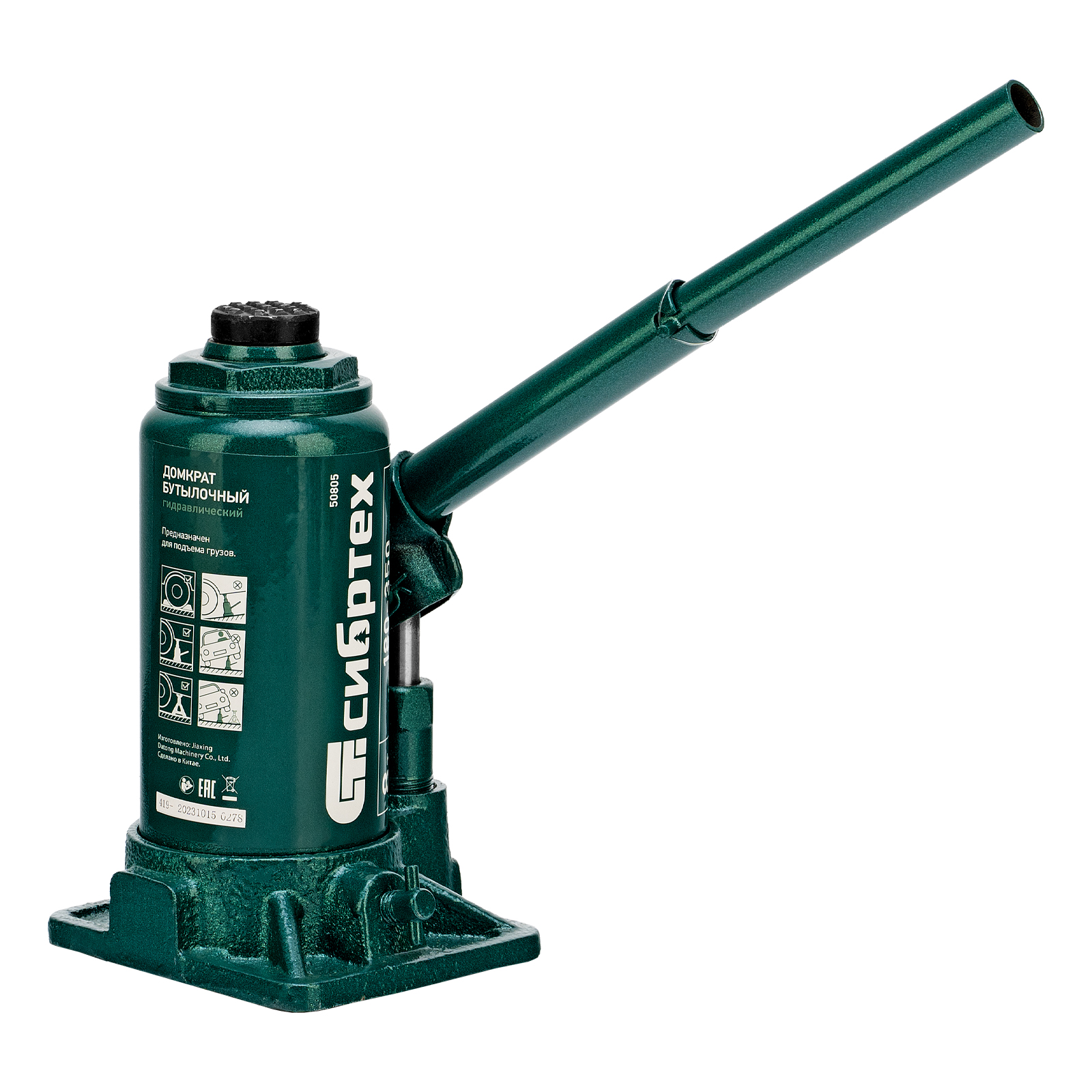 Домкрат гидравлический бутылочный Сибртех 50805 предназначен для подъема грузов массой до 8 т на высоту от 180 до 350 мм. Не требует больших усилий от пользователя и значительно облегчает рабочий процесс. Домкрат будет полезен при проведении техобслуживания машины в автосервисе или гараже.