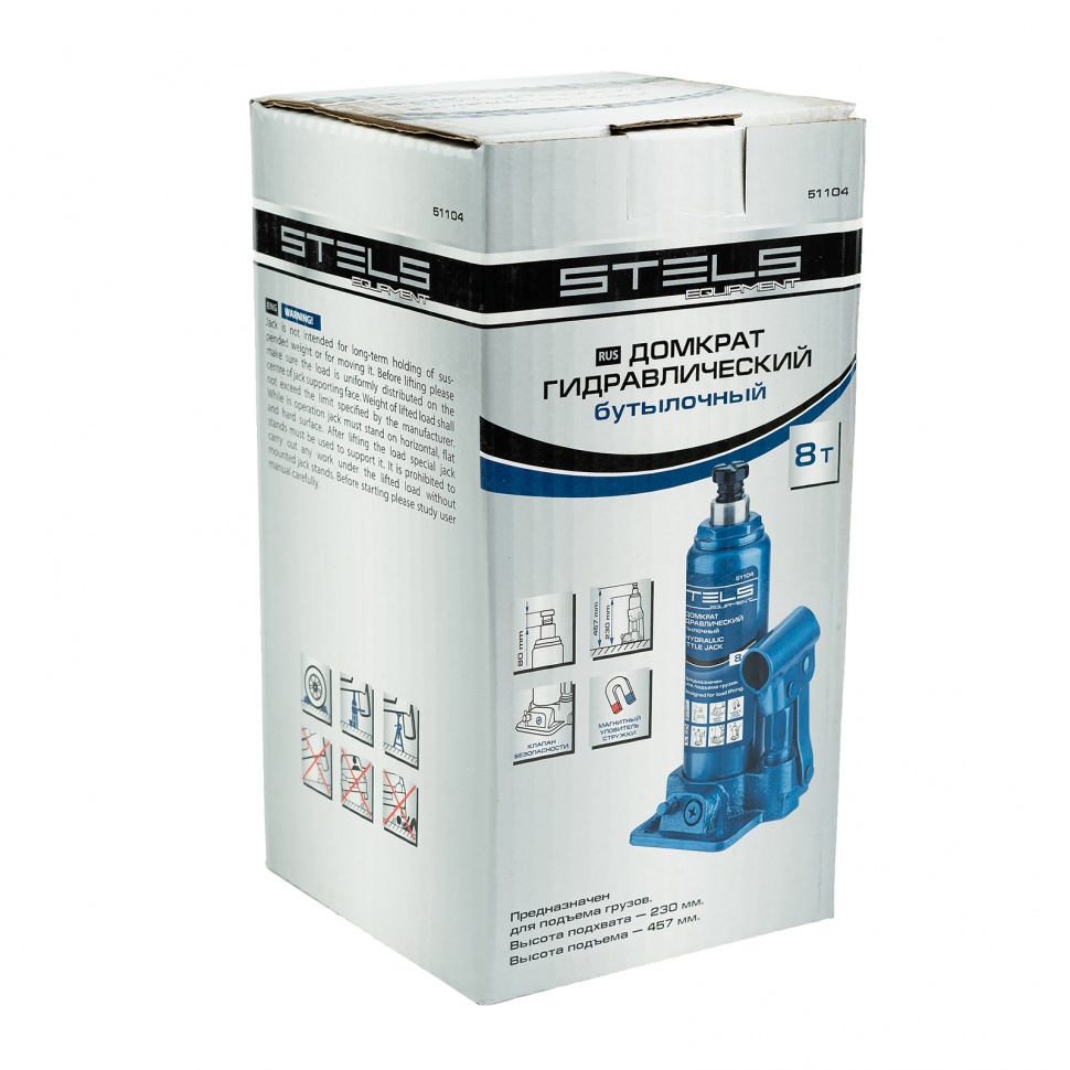 Гидравлический бутылочный домкрат Stels 51104 предназначен для поднятия грузов массой до 8 т на высоту с 230 до 457 мм. Позволяет установить жесткую опору под груз для последующего проведения ремонта. Будет полезен на станции техобслуживания, подойдет также для самостоятельного обслуживания автомобиля. Пригодится во время проведения ремонтно-строительных работ.