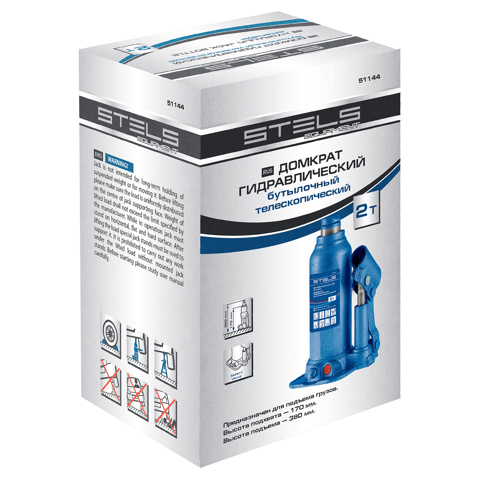 Гидравлический бутылочный телескопический домкрат Stels 51144 используется для поднятия грузов весом до 2 т с на высоту 170-380 мм. Не требует больших усилий и оптимален для автомобилей с большим клиренсом. Домкрат можно использовать в гараже для самостоятельного ремонта машины или в автосервисе для решения профессиональных задач.