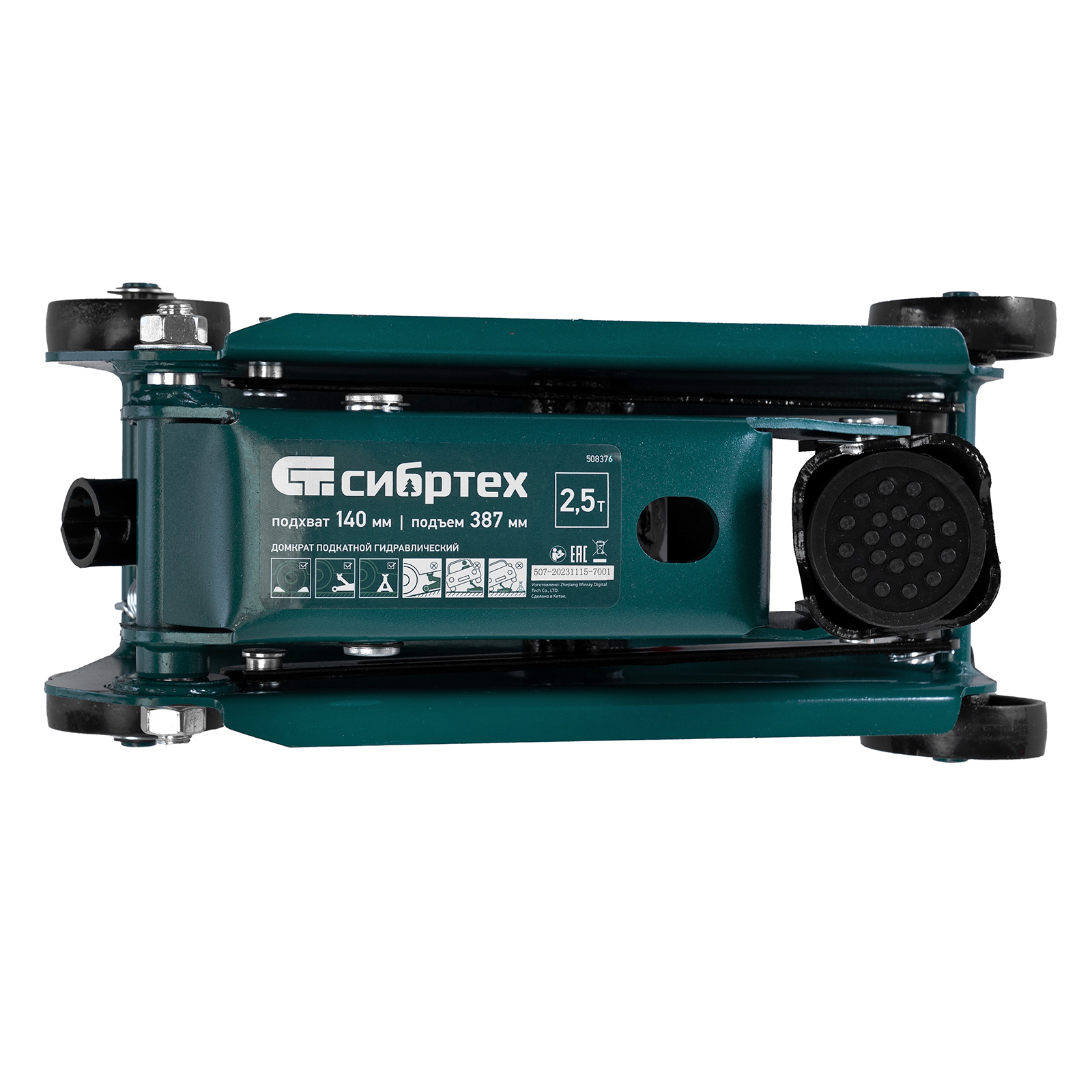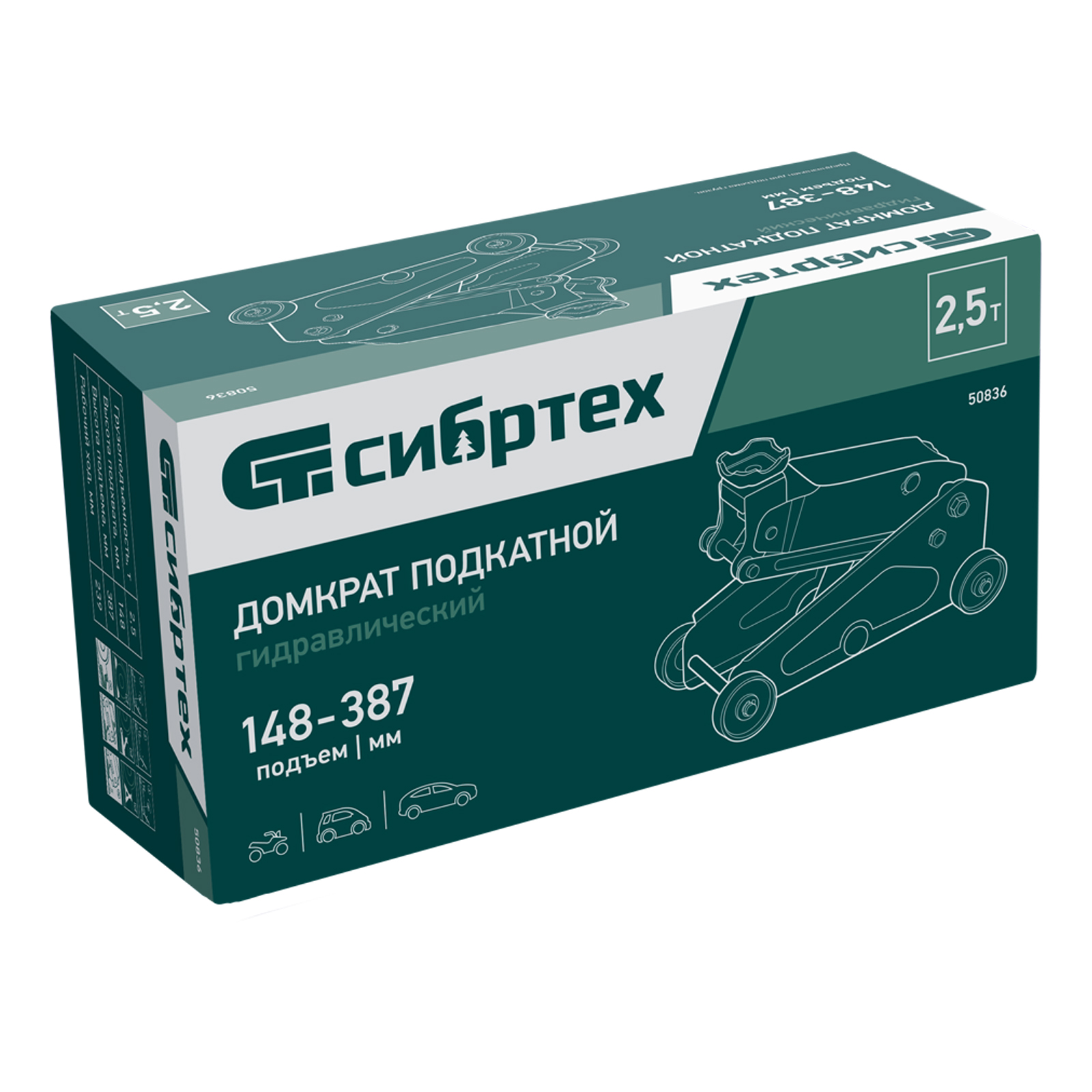 Гидравлический подкатной домкрат Сибртех 50836 с высотой подхвата 148 мм предназначен для подъема грузов массой до 2,5 т на высоту до 387 мм. Применяется для обслуживания автомобилей со стандартным клиренсом. Компактный домкрат подходит для самостоятельного использования автовладельцами.