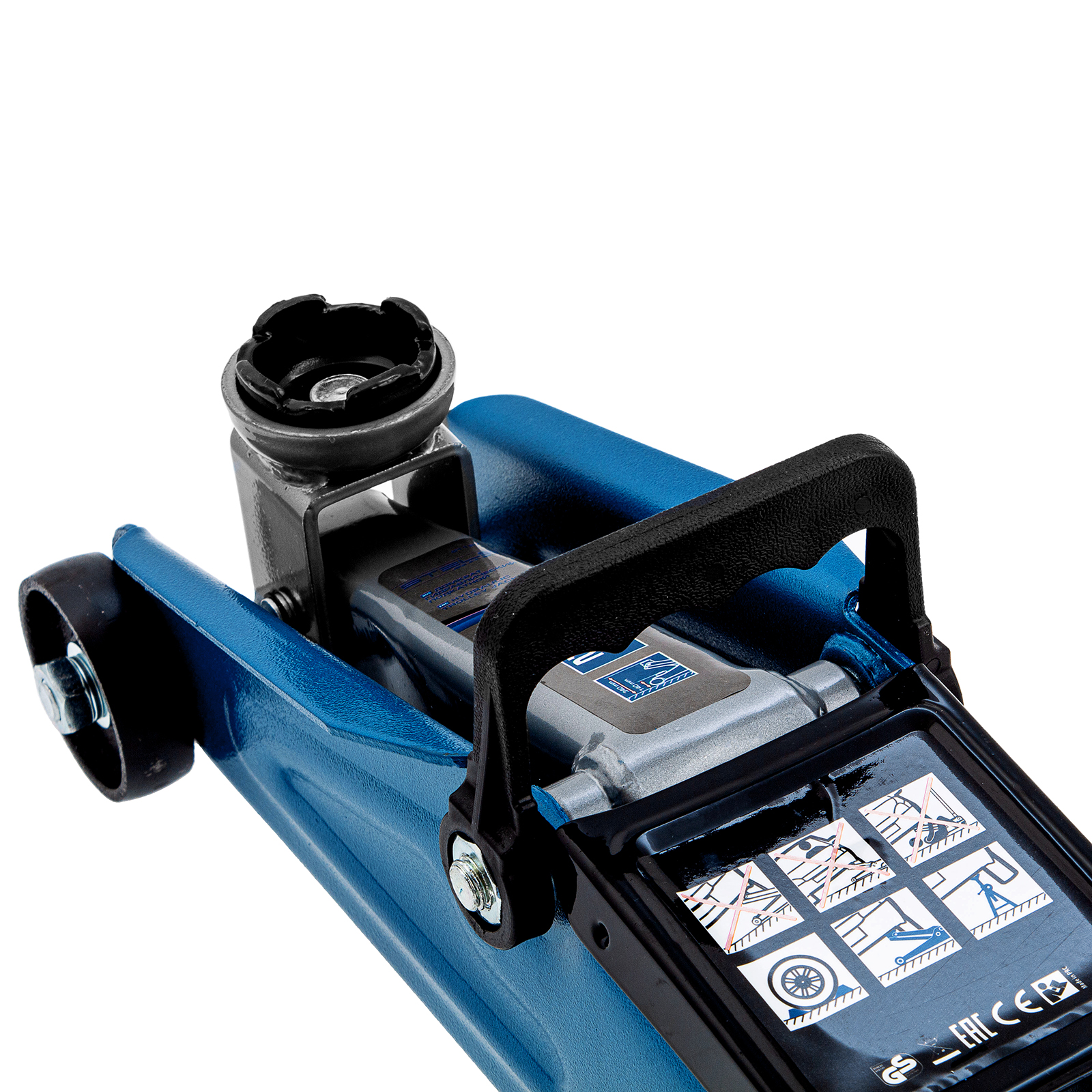 - Маневренность — благодаря поворотным колесам домкрат можно быстро подвести под груз.