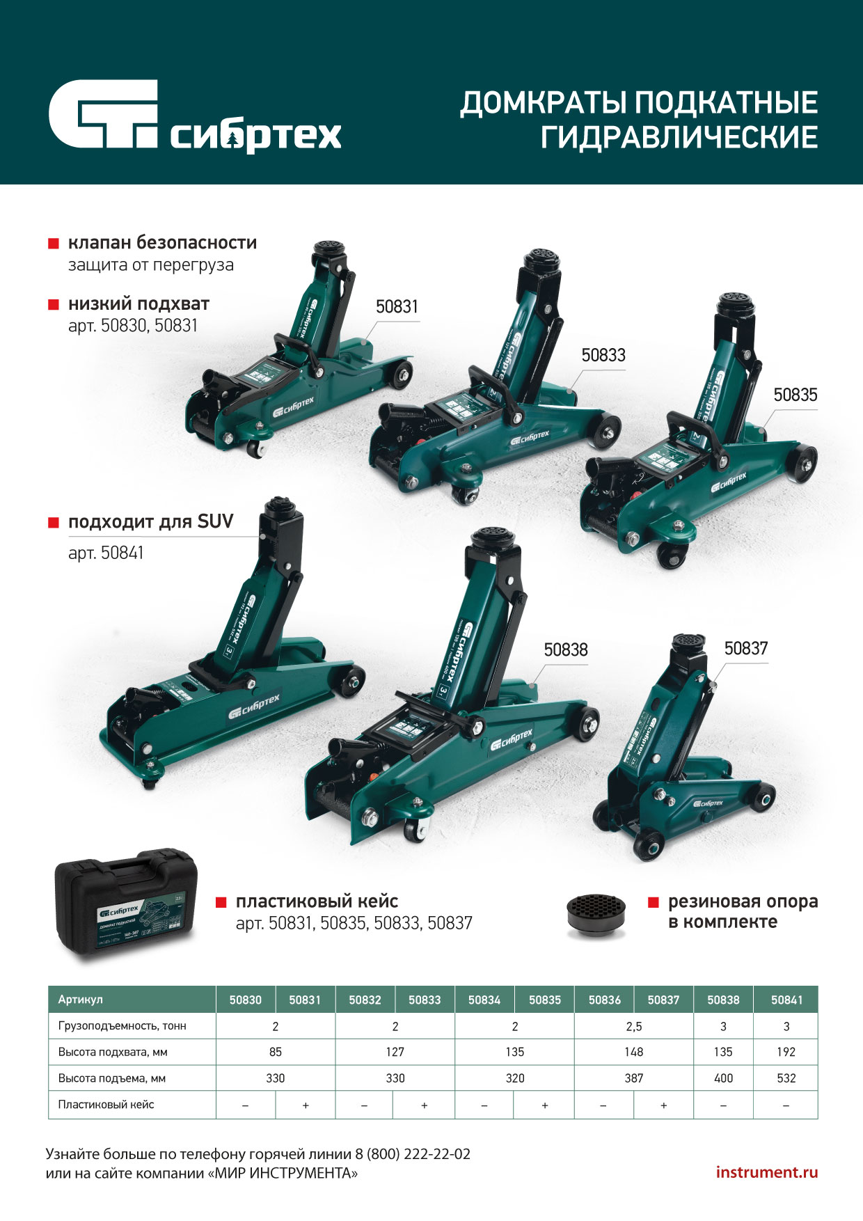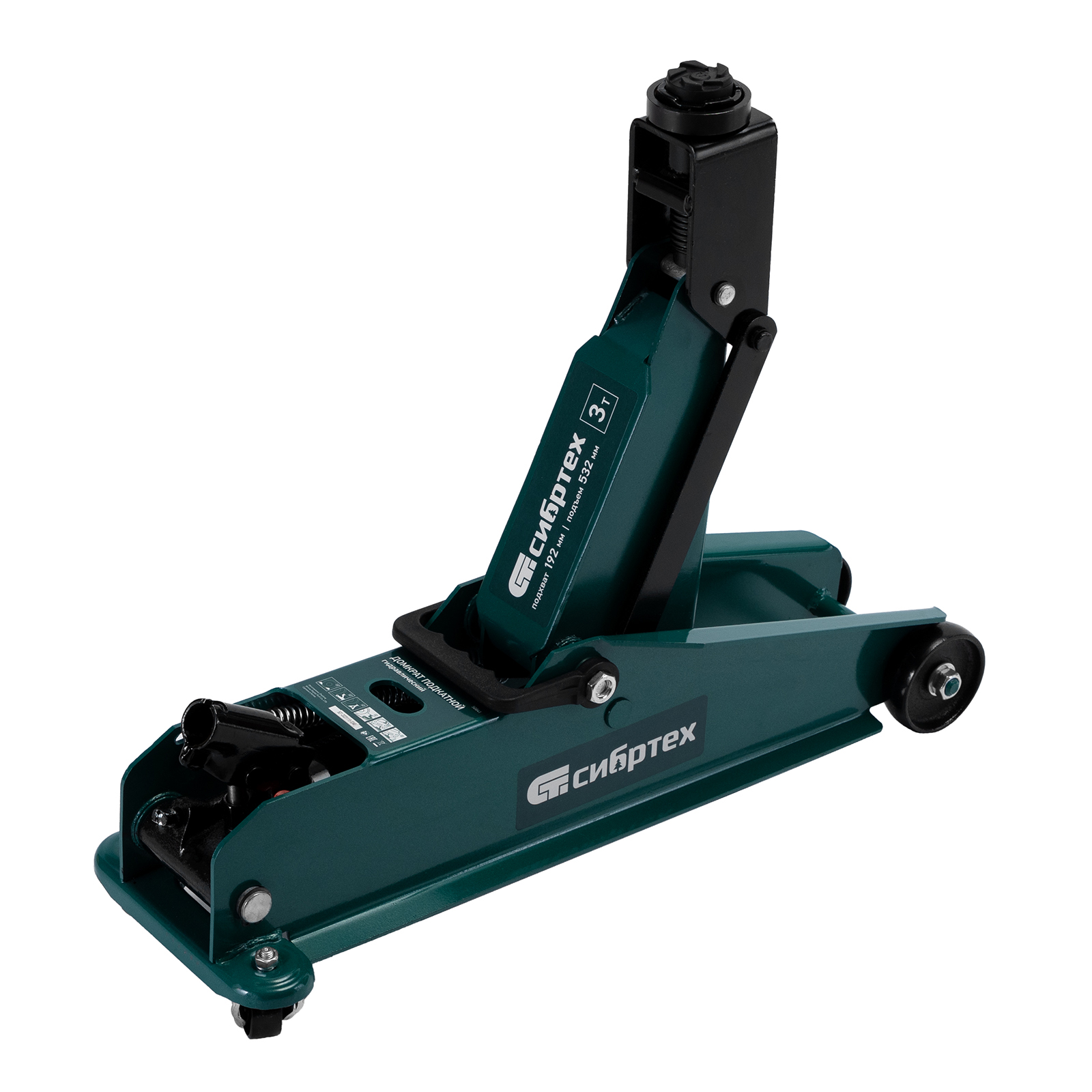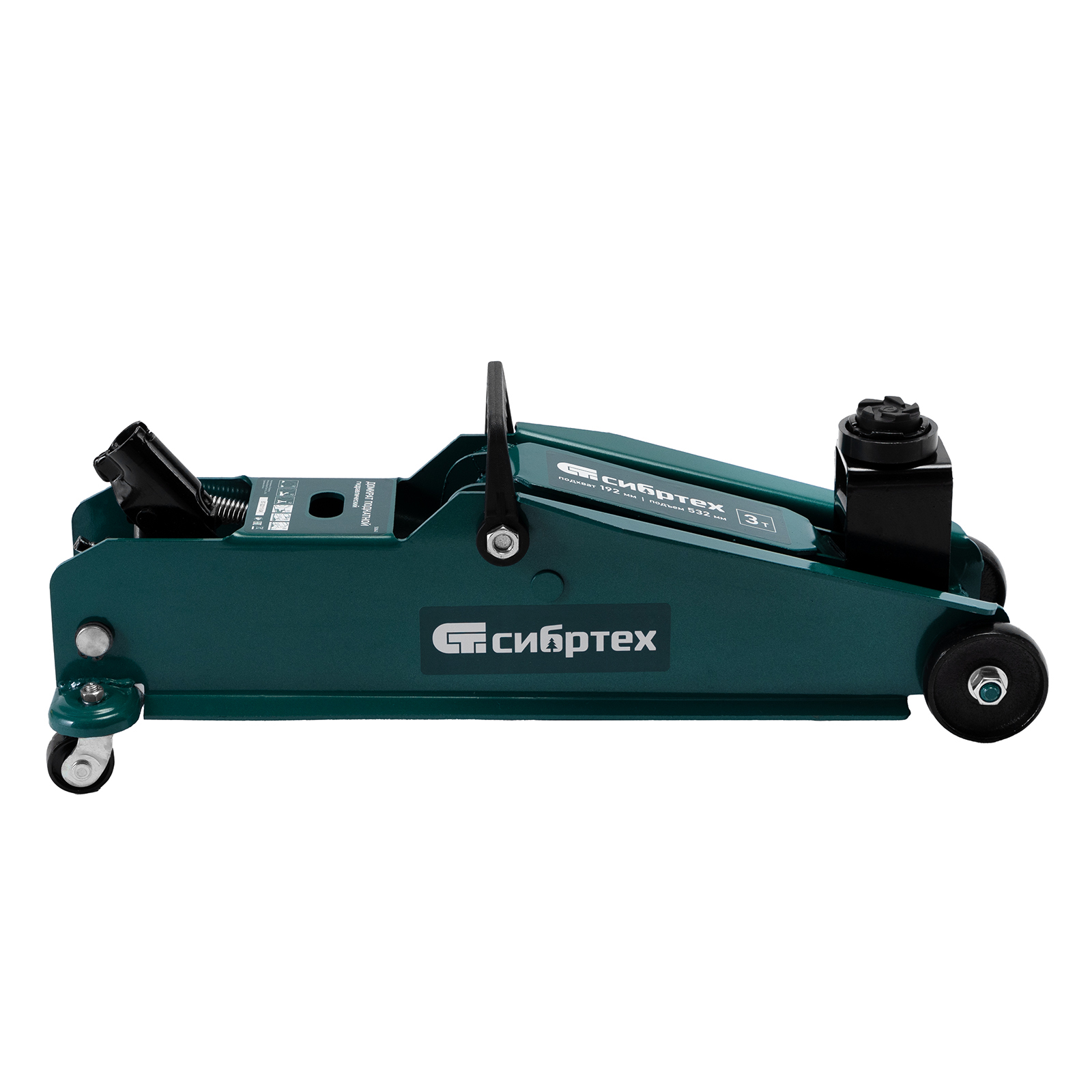 Гидравлический подкатной домкрат Сибртех 50841 с высотой подхвата 192 мм, предназначен для подъема грузов массой до 3 т на высоту до 532 мм, подходит для автомобилей со стандартным клиренсом и SUV. Компактный домкрат подходит для самостоятельного использования автовладельцами.