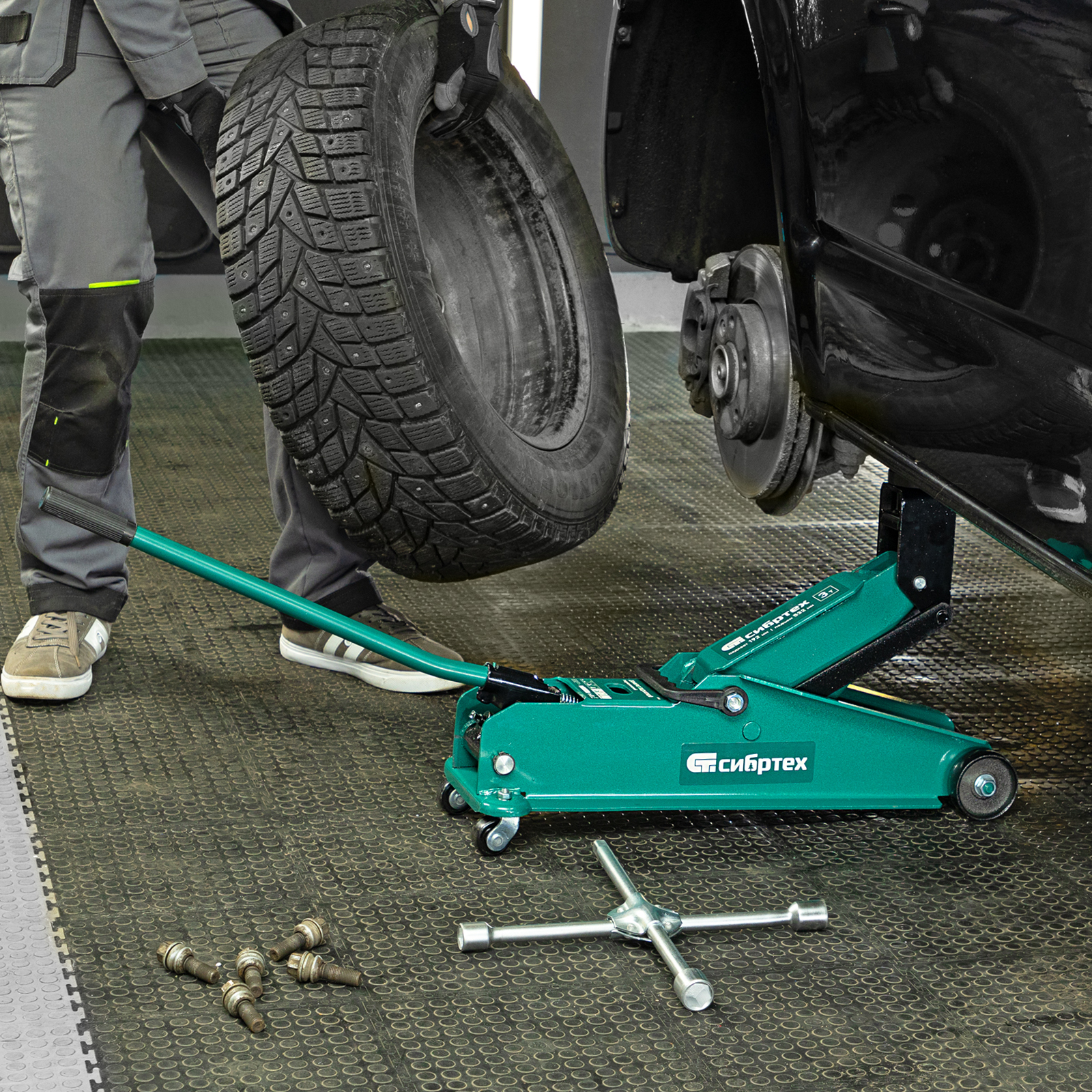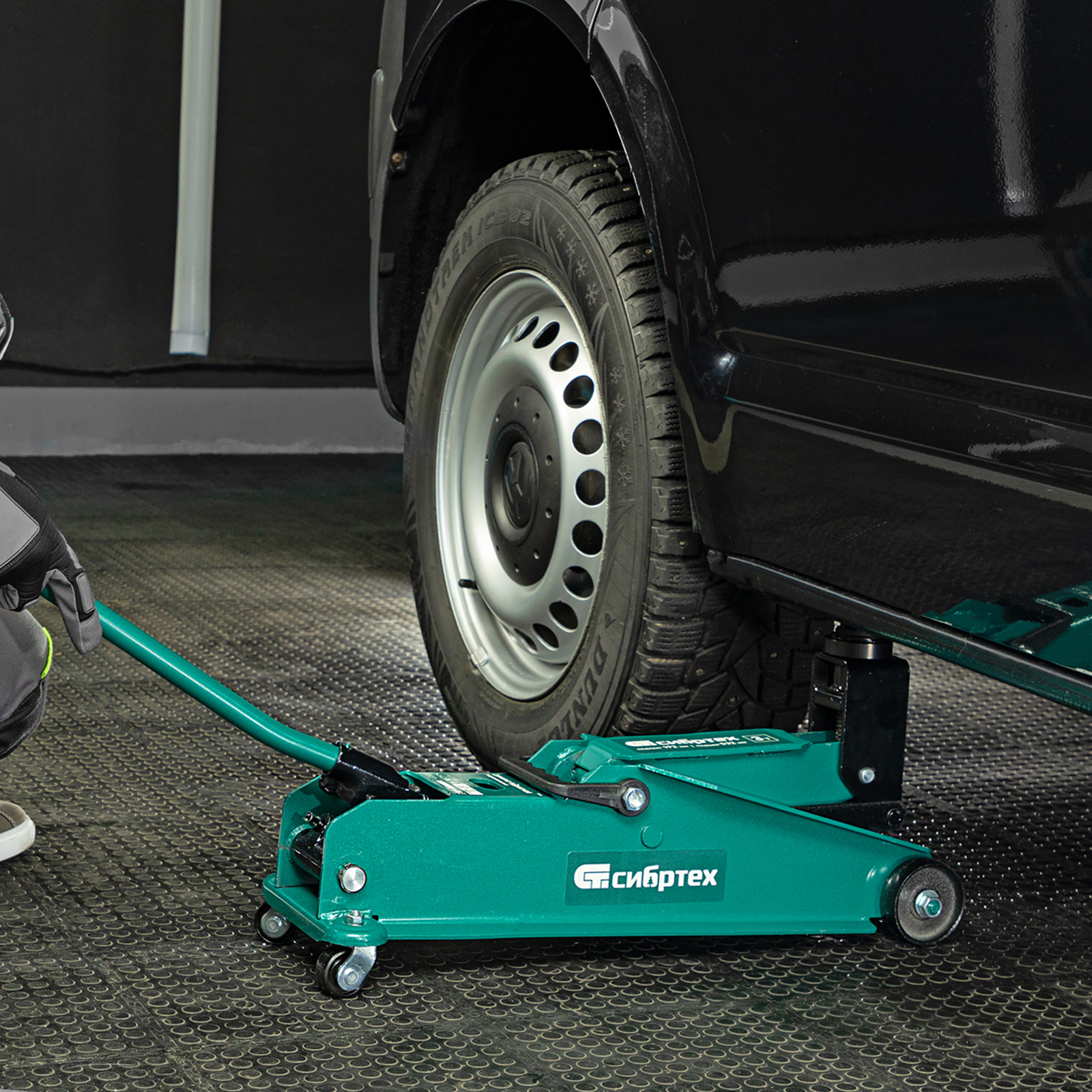 - Маневренность — благодаря поворотным колесам домкрат можно быстро подвести под груз.