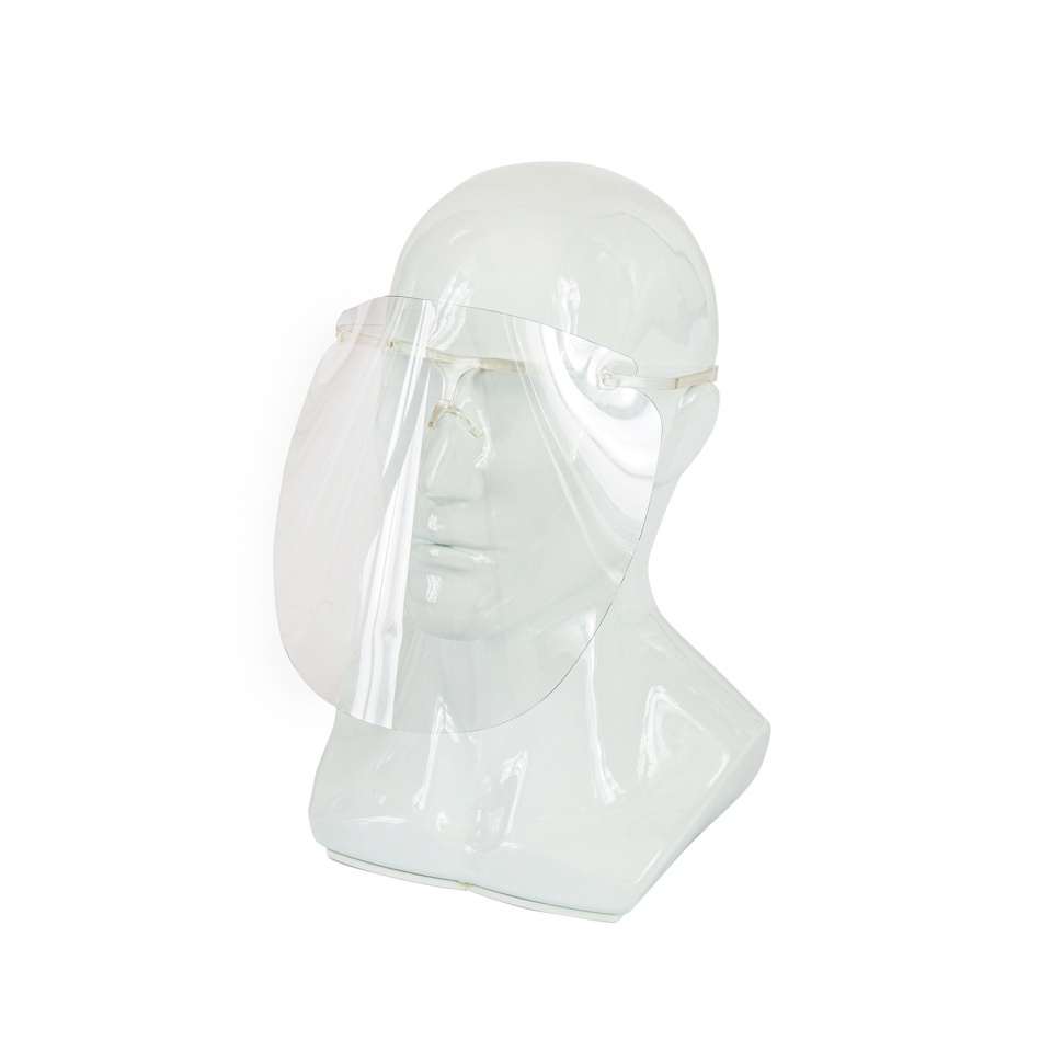 - Защитный экран фиксируется на переносице и за ушами как очки.