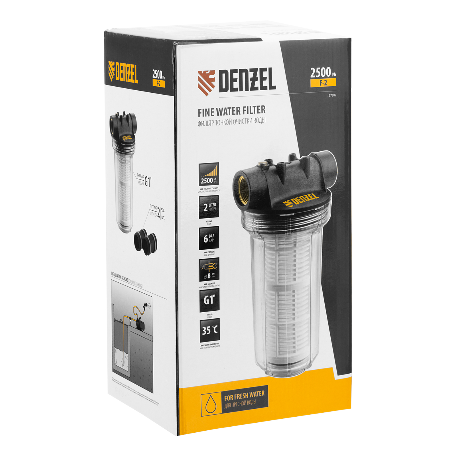 Фильтр Denzel F2 97282 объемом 2 л, с присоединительным диаметром 1 дюйм, используется для очищения воды от песка и грязевых частиц диаметром до 8 мкм. Применяется на насосах и насосных станциях ТМ Denzel, будет полезен для организации системы водоснабжения на загородном участке.
