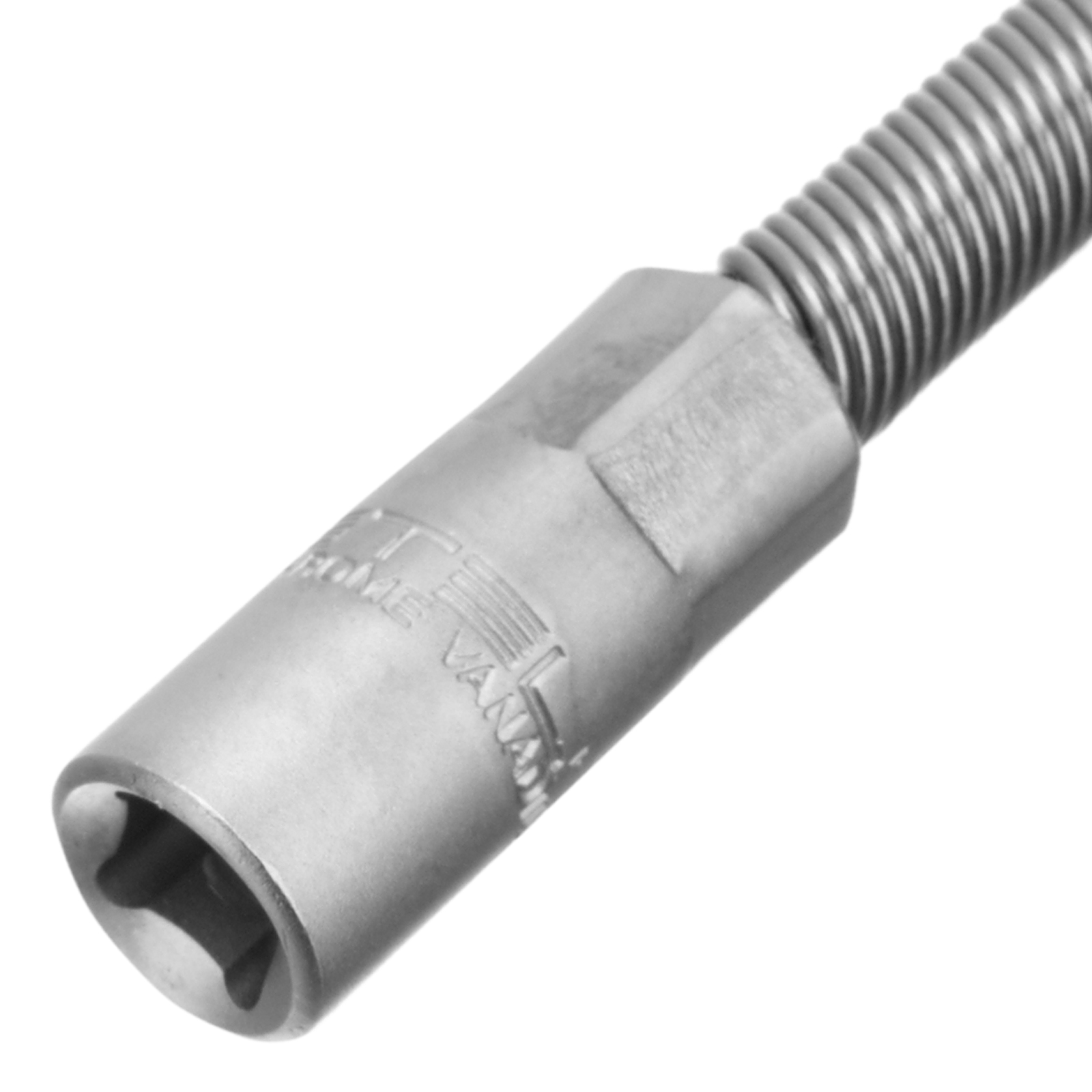 Гибкий удлинитель Stels 13909 длиной 150 мм, под квадрат 1/4", предназначен для монтажа и демонтажа резьбовых соединений. Совместим с торцевыми головками, карданными шарнирами и другими насадками. Благодаря гибкой конструкции облегчает работу с крепежом, расположенным в труднодоступных местах, в том числе под углом. Удлинитель будет полезен в слесарной мастерской, пригодится для проведения профессионального или самостоятельного ремонта автомобилей.