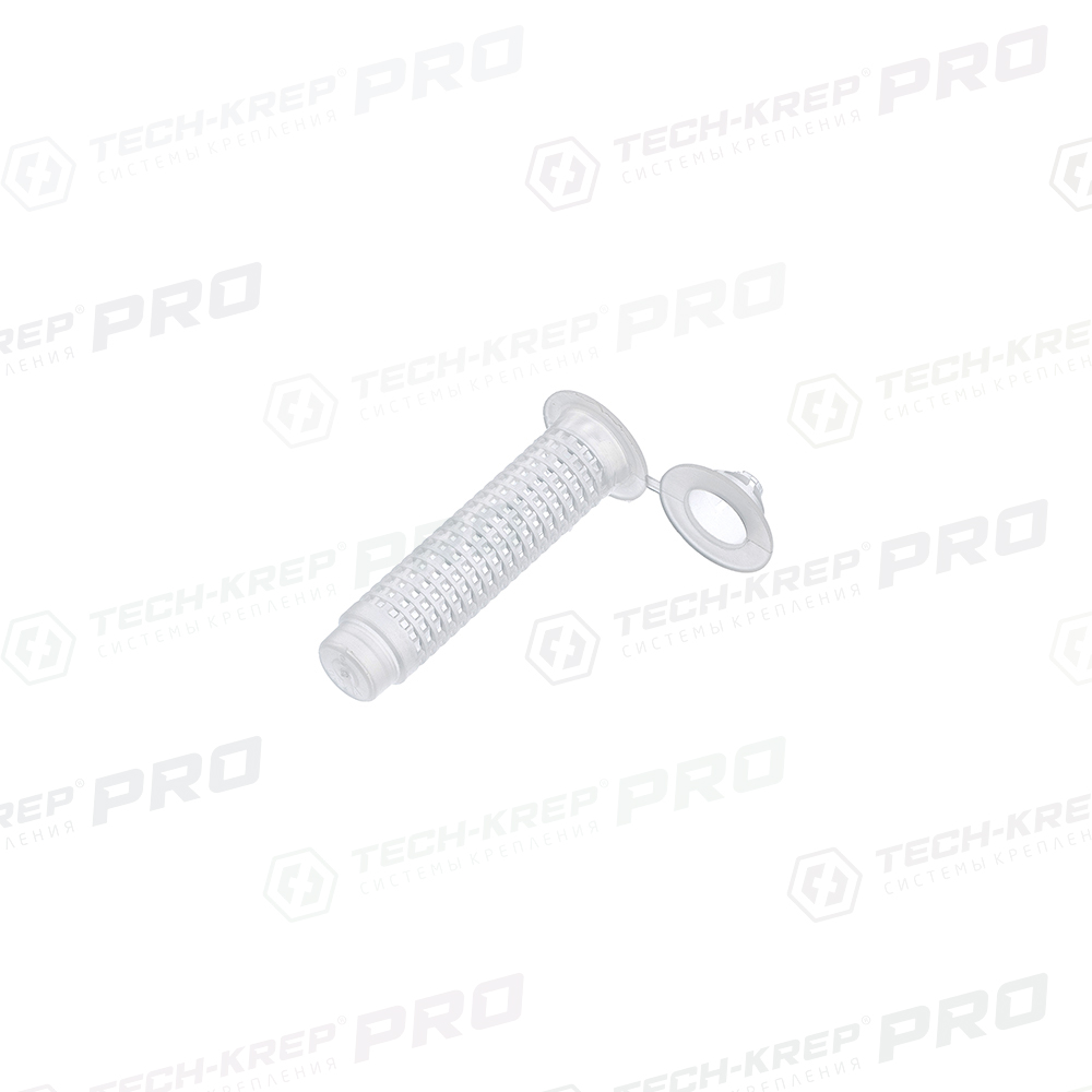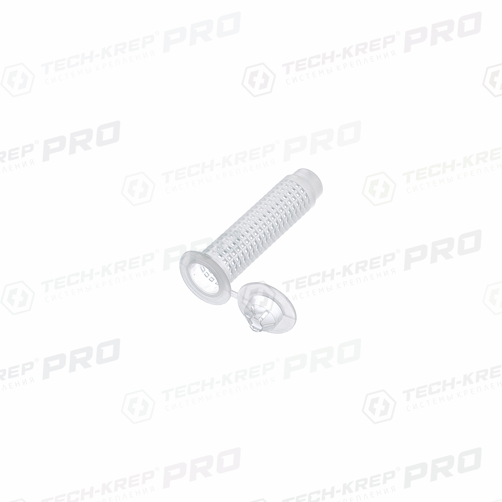 Особенности: сетчатая гильза служит в качестве дополнительного крепежного элемента системы химической анкеровки для строительных материалов с внутренними пустотами. Размеры и форма ячеек сетчатой гильзы обеспечивают равномерное распределение клеевого состава в установочном отверстии. Колпачок с центрирующими разрезами удерживает резьбовую шпильку вдоль оси до момента полного застывания химического раствора. Материал: пластик;