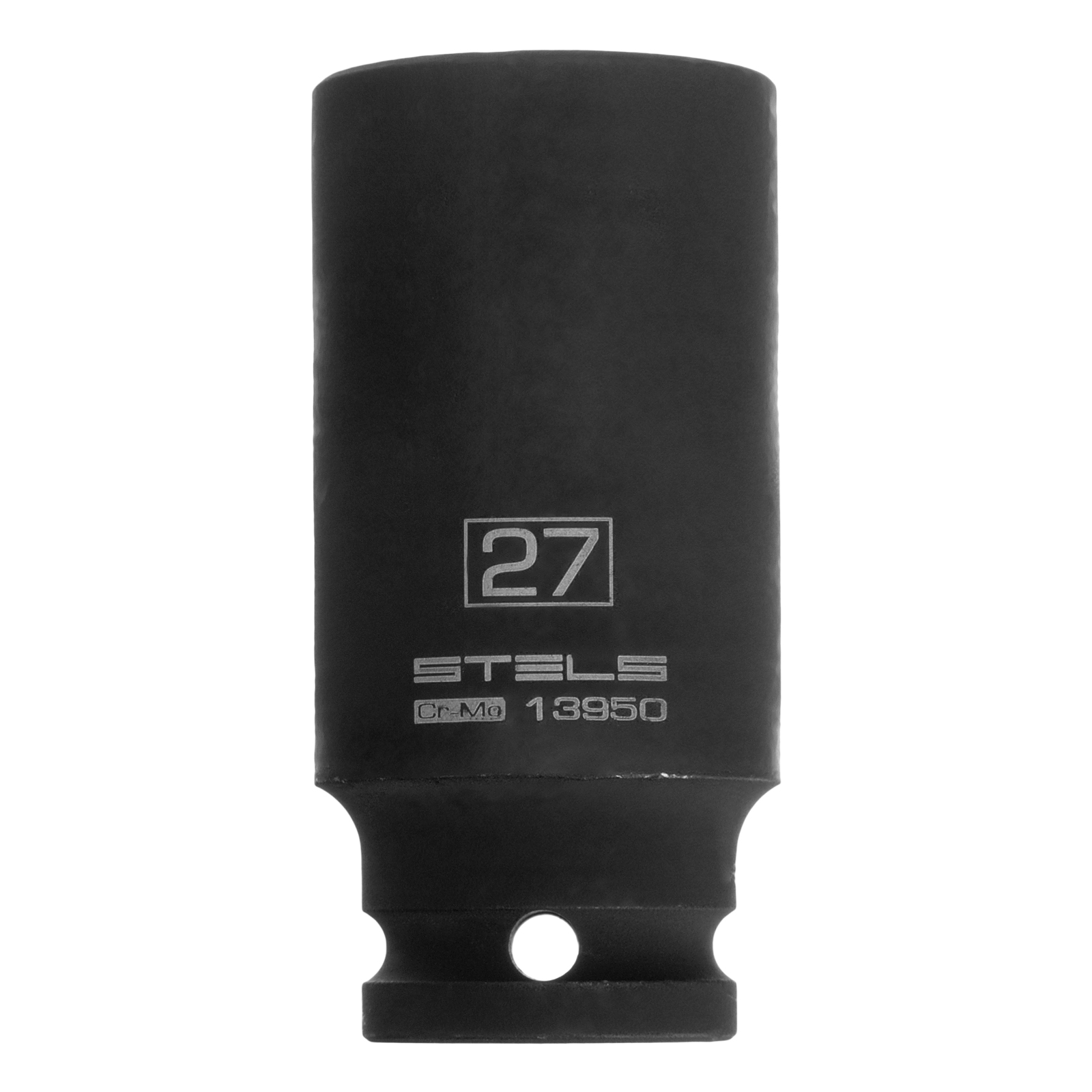 Ударная удлиненная шестигранная головка Stels 13950 размером 27 мм, из стали CrMo, с присоединительным квадратом 1/2 дюйма, предназначена для монтажа и демонтажа резьбовых соединений с помощью пневматического или электрического гайковерта. Подходит для профессионального применения на строительной площадке и в автомастерской, т.к. выдерживает интенсивную эксплуатацию с высокими динамическими нагрузками. Головка имеет удлиненный профиль, что облегчает работу в труднодоступных местах.