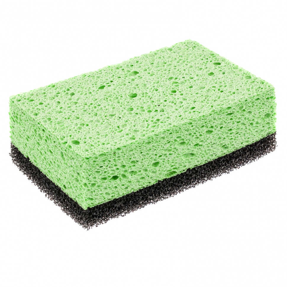 Целлюлозная комбинированная губка Сибртех 86838 размером 150 х 95 х 50 мм применяется для удаления излишков эпоксидной затирки. Она имеет двухслойную структуру: жесткий слой из ретикулированного поролона и целлюлозы используется для первичной очистки, а мягкий - для финишной обработки поверхности и удаления воды.