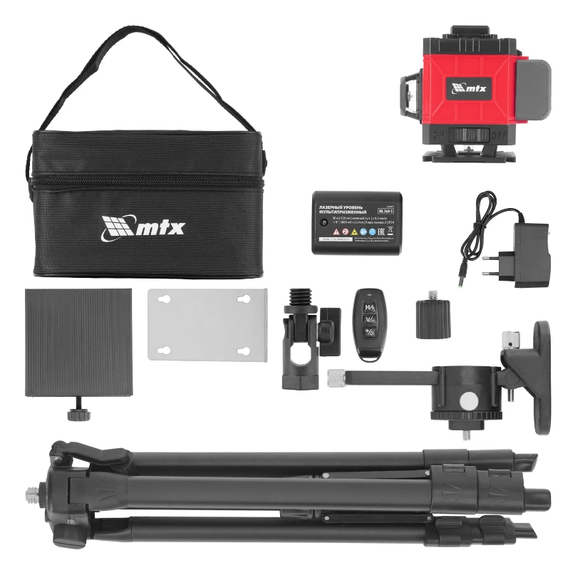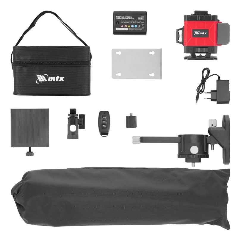 Лазерный уровень - 1 штМагнитный держатель с пластиной - 1 штПодъемная платформа - 1 штАккумулятор - 1 штЗарядное устройство - 1 штАдаптер 5/8-1/4 - 1 штПульт ДУ - 1 штОчки - 1 штСумка - 1 штШтатив - 1 штИнструкция - 1 шт |