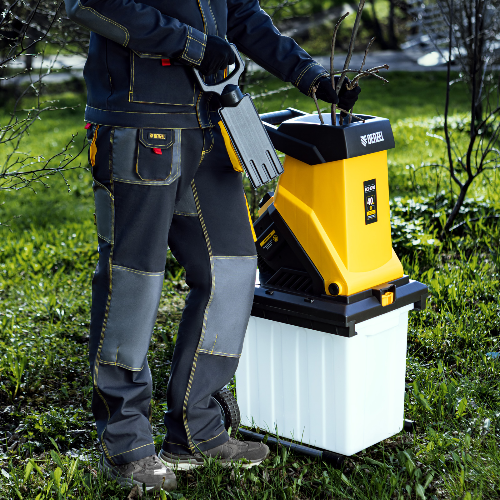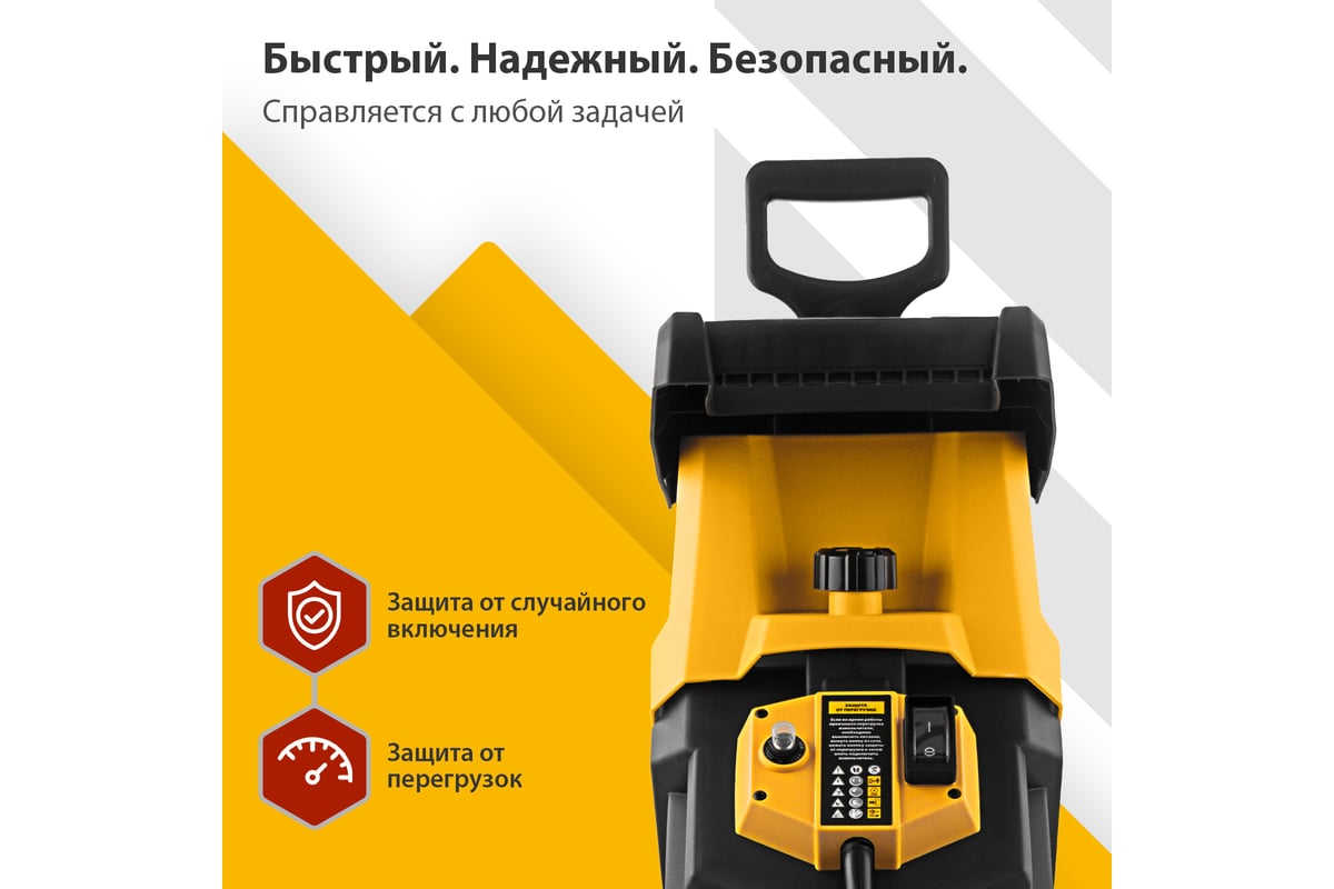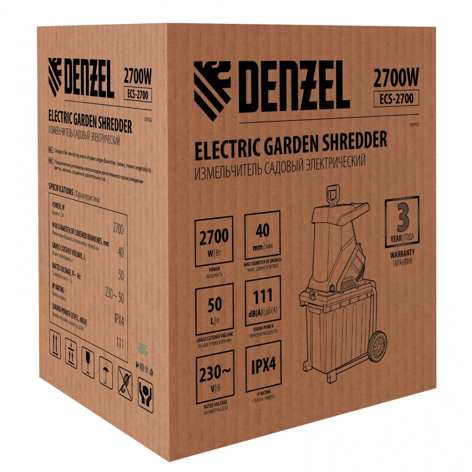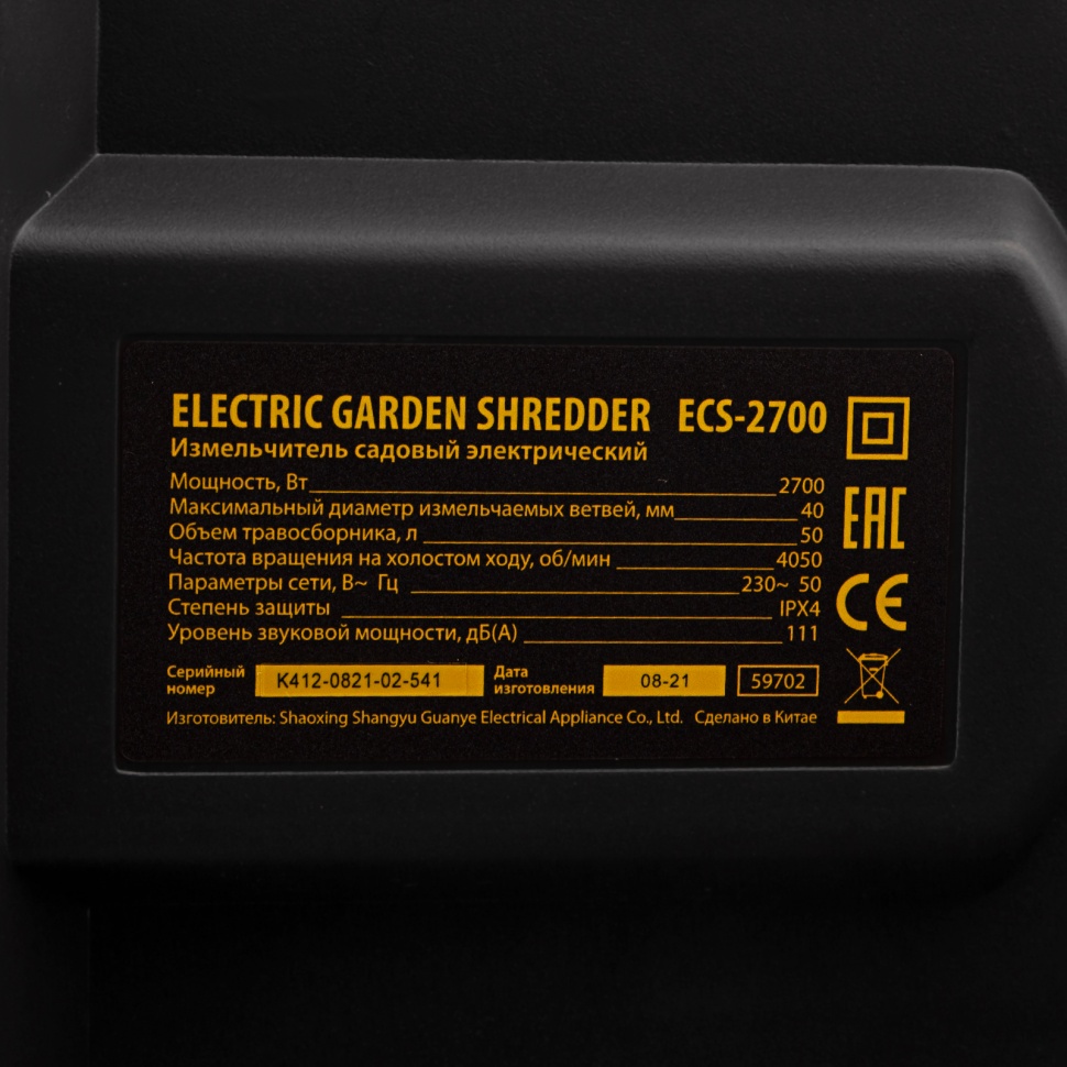 Измельчитель - 1 шт, Контейнер - 1 шт, Рама - 2 шт, Колеса с крепежом - 2 шт, Толкатель - 1 шт, Запасные ножи - 2 шт, Набор ключей - 1 компл, Руководство пользователя с гарантийным талоном - 1 шт |