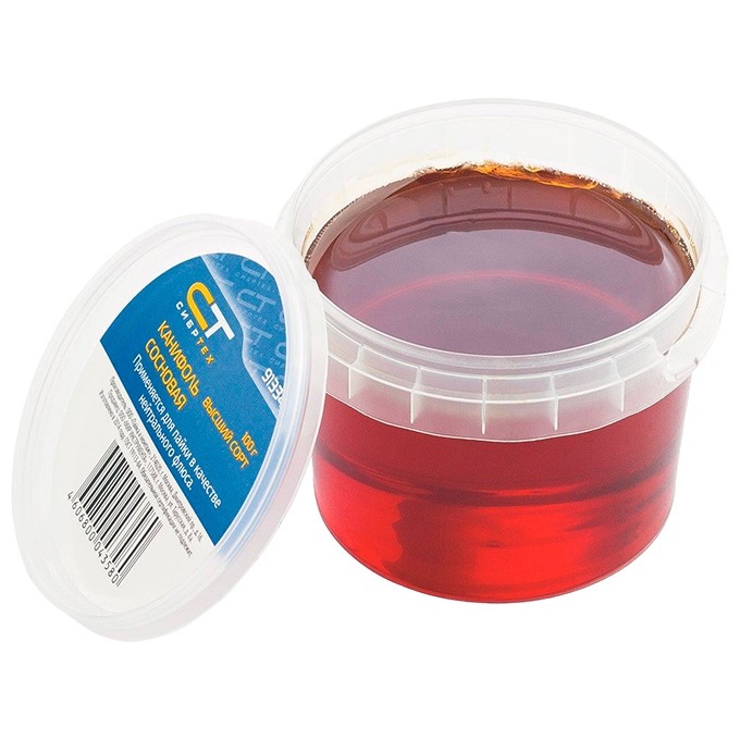 Канифоль высшего качества Сибртех 913342 в банке объемом 100 г, изготовленная в соответствии с ГОСТ 19113-84, — нейтральный флюс на основе сосновой смолы. Используется для пайки проводов и радиодеталей, а также лужения жала паяльника. Удаляет с металлических поверхностей оксидные пленки и повышает надежность паяного соединения. Пригодится радиолюбителям, а также будет полезна в быту.