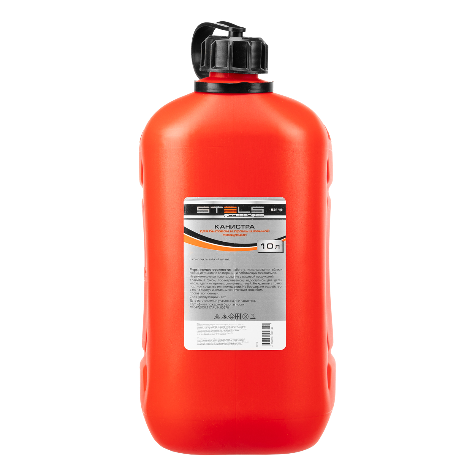 Пластиковая канистра Stels 53118 объемом 10 литров, вертикальная, предназначена для хранения и транспортировки жидкостей, что делает ее незаменимой в различных отраслях промышленности и быта.