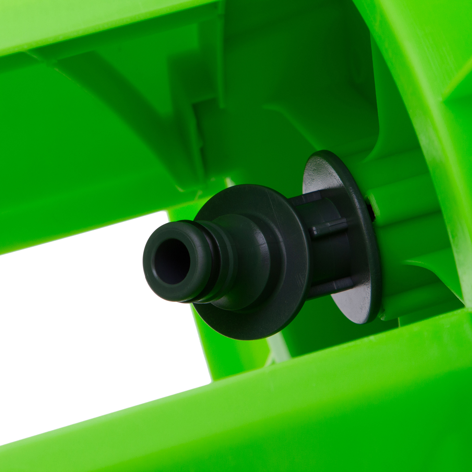 Катушка Palisad на колесах упрощает работу с поливочным шлангом длиной до 45 м. Позволяет регулировать его длину во время работ на участке, а также обеспечивает бережное хранение, предотвращая перекручивание и запутывание. Боковая рукоятка облегчает разматывание и наматывание шланга.