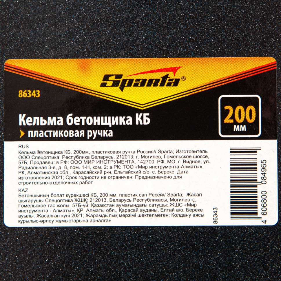 Кельма бетонщика Sparta КБ 86343 с полотном длиной 200 мм и пластиковой рукояткой — инструмент для кладки кирпичей и строительных блоков, а также перемешивания цементного раствора. Полотно изготовлено из углеродистой стали, а рукоятка — из ударопрочного пластика, поэтому кельма подходит для длительного использования. Инструмент используется для проведения строительных работ.
