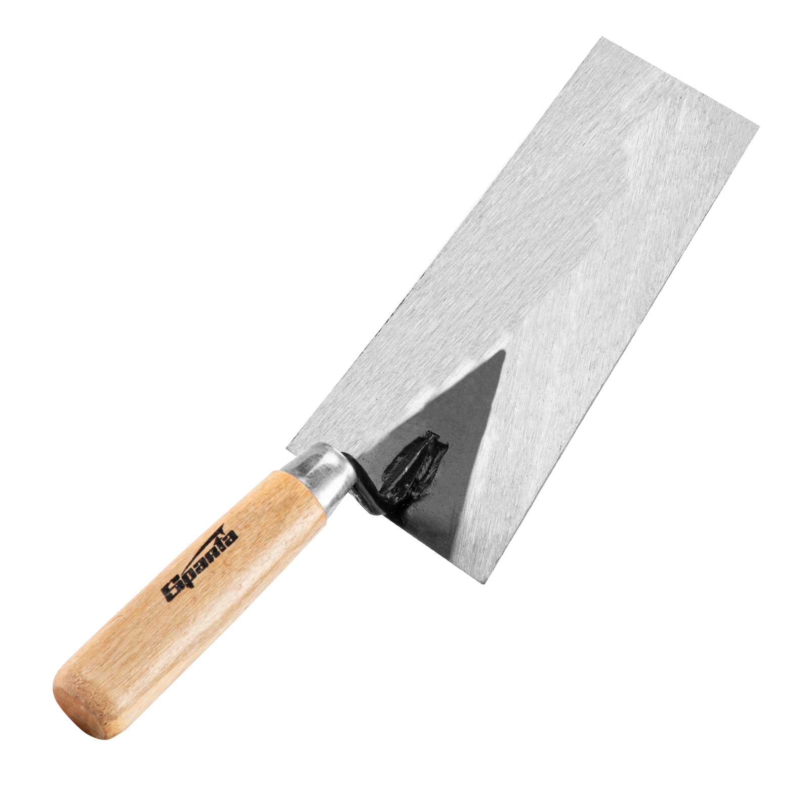 Стальная кельма отделочника Sparta 862745 имеет трапециевидное рабочее полотно длиной 160 мм и деревянную ручку. Инструмент предназначен для нанесения и разравнивания гипсовых, цементных смесей и клеевых составов. Благодаря прямым граням кельма легко удаляет излишки раствора. Применяется для укладки плитки и проведения других строительных и отделочных работ.