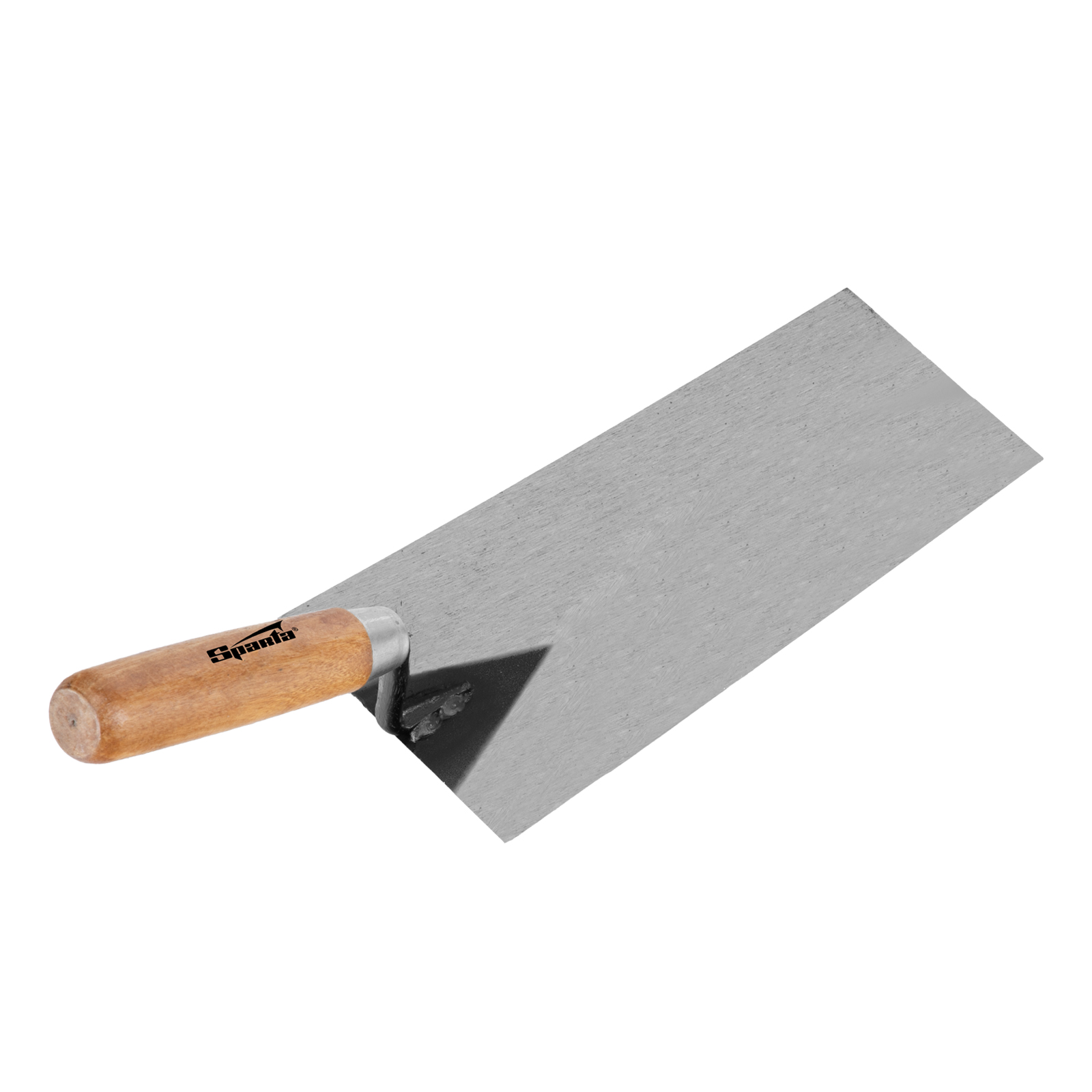 Стальная кельма отделочника Sparta 862765 имеет трапециевидное рабочее полотно длиной 200 мм и деревянную ручку. Инструмент предназначен для нанесения и разравнивания гипсовых, цементных смесей и клеевых составов. Благодаря прямым граням кельма легко удаляет излишки раствора. Применяется для укладки плитки и проведения других строительных и отделочных работ.
